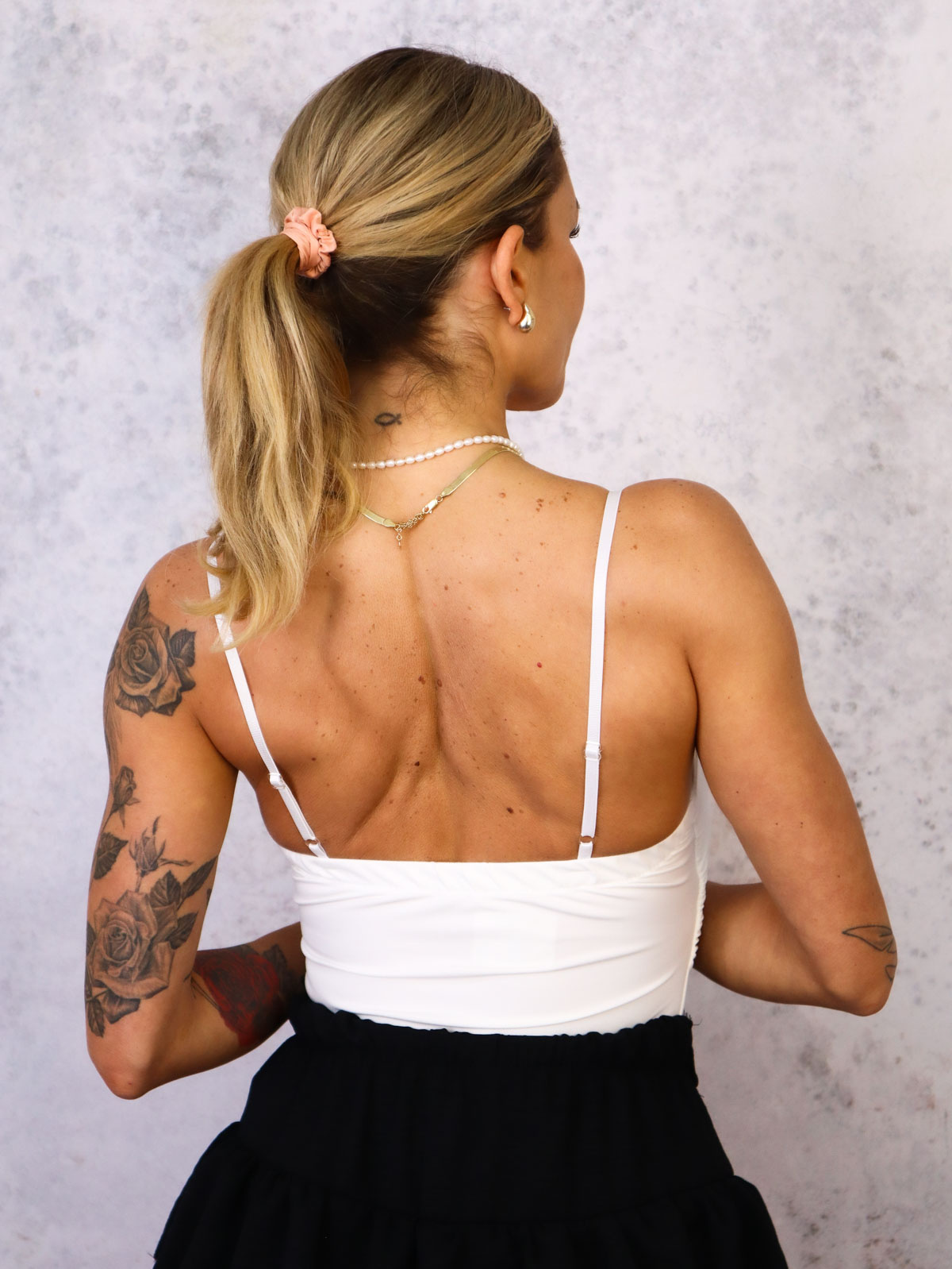 USZTYWNIANY TOP NA RAMIĄCZKACH- BIAŁY