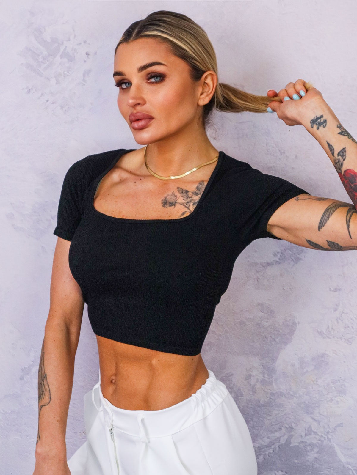 TOP PRĄŻKOWANY Z KWADRATOWYM DEKOLTEM- CZARNY