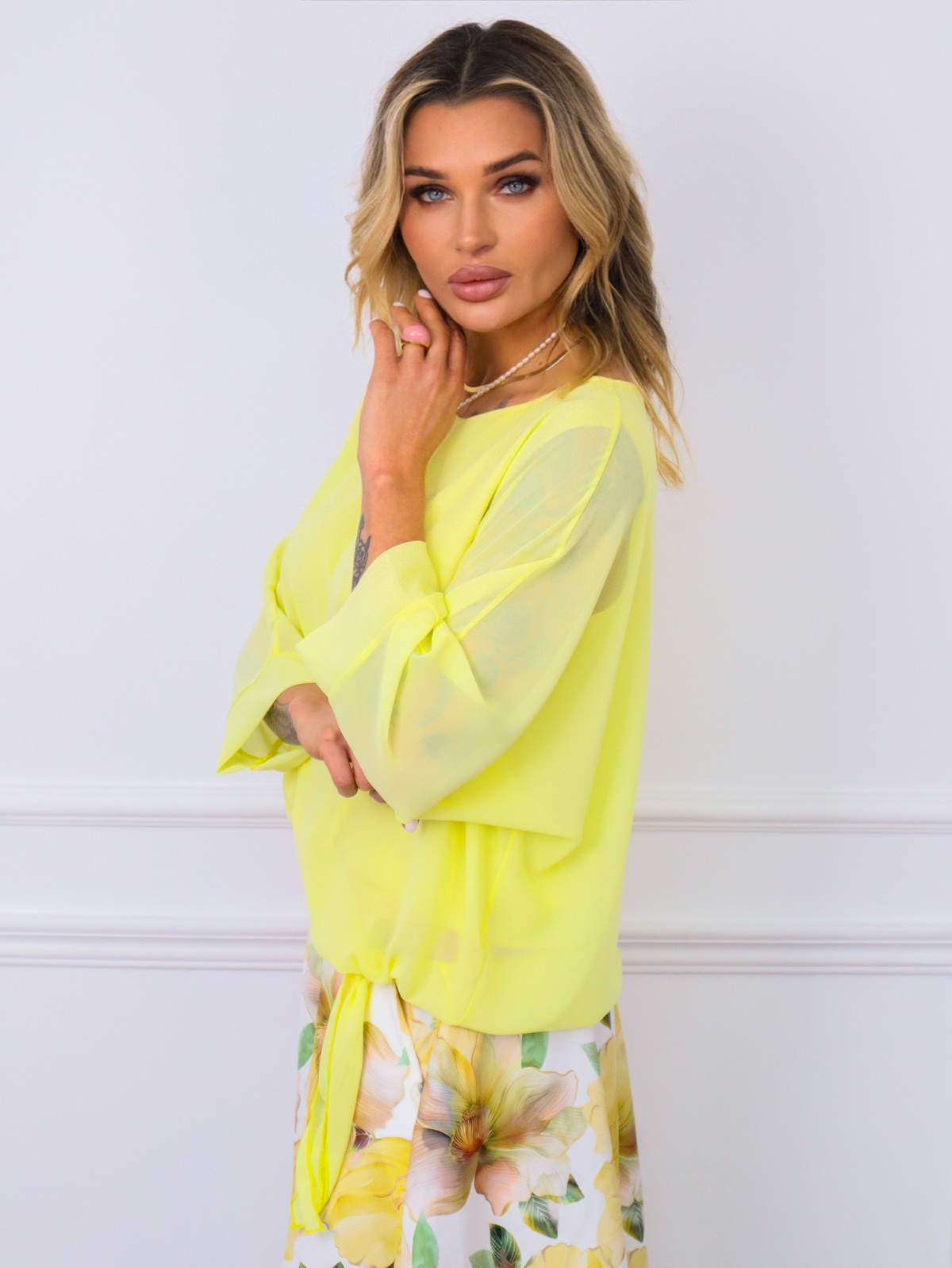 BLUZKA SZYFONOWA O KROJU NIETOPERZA Z WIĄZANIEM- ŻÓŁTA