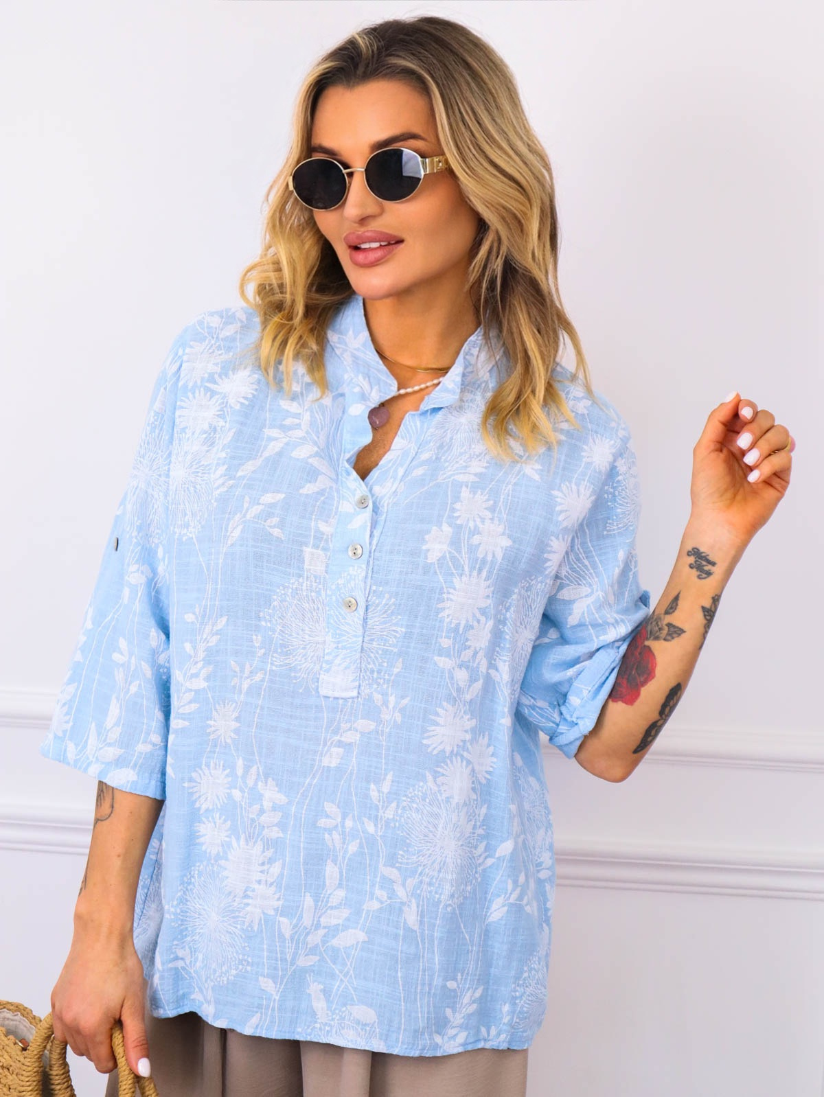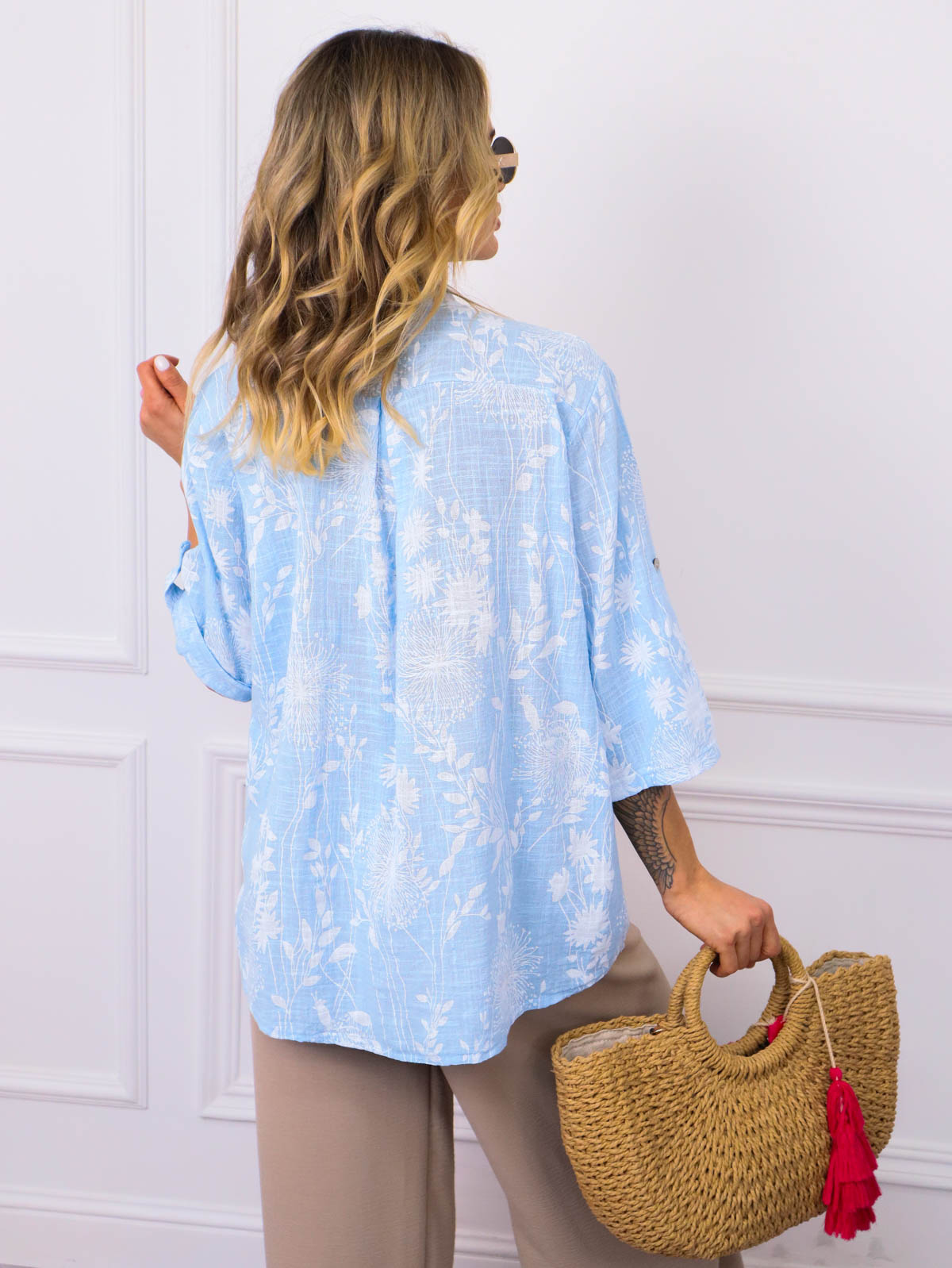 BLUZKA KOSZULOWA W KWIECISTE WZORY- NIEBIESKA
