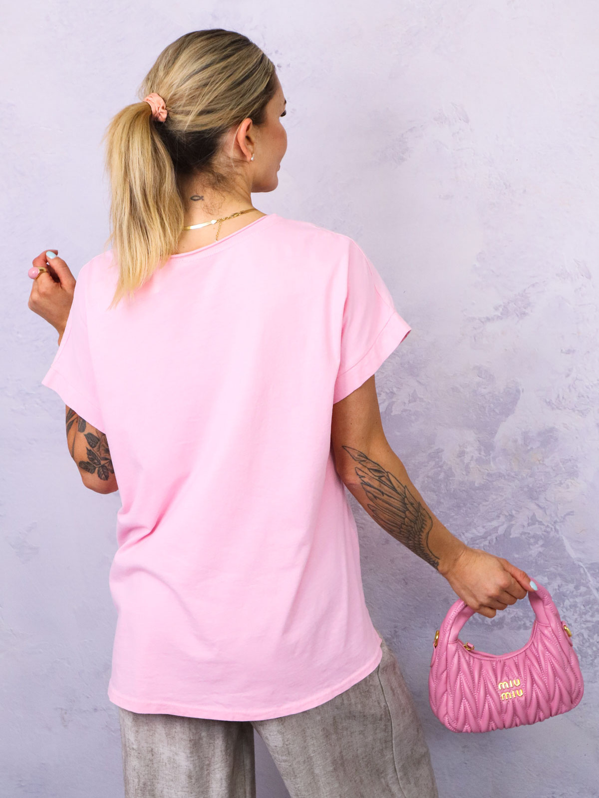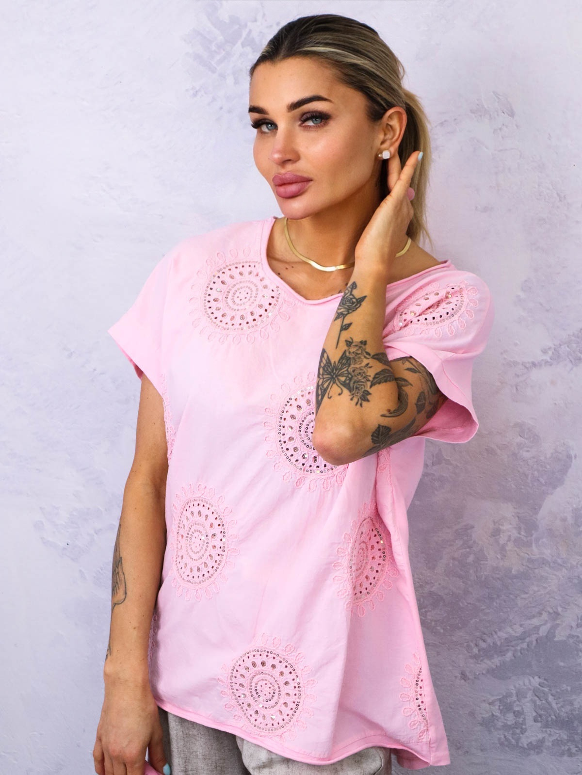 BLUZKA Z HAFTOWANYM WZOREM ZDOBIONA CEKINAMI- RÓŻOWA