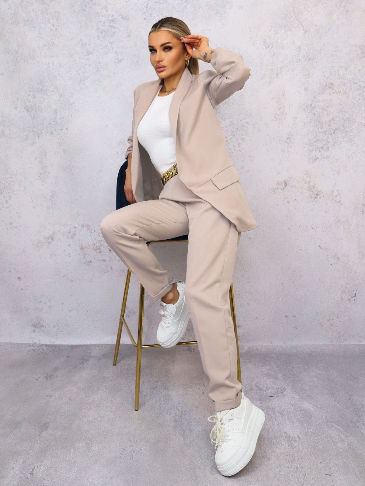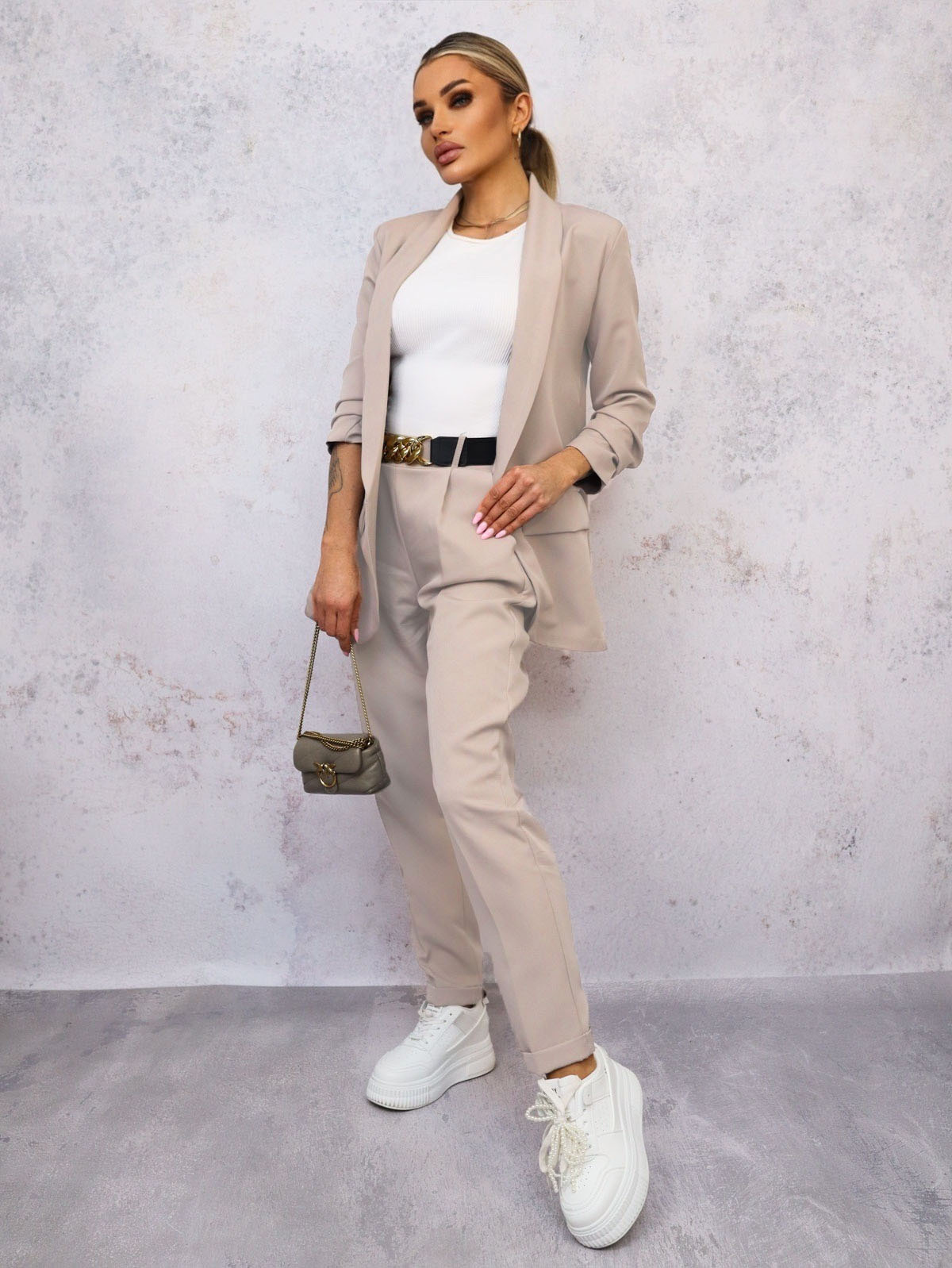 CIEMNOBEŻOWY KOMPLET MARYNARKA+ SPODNIE