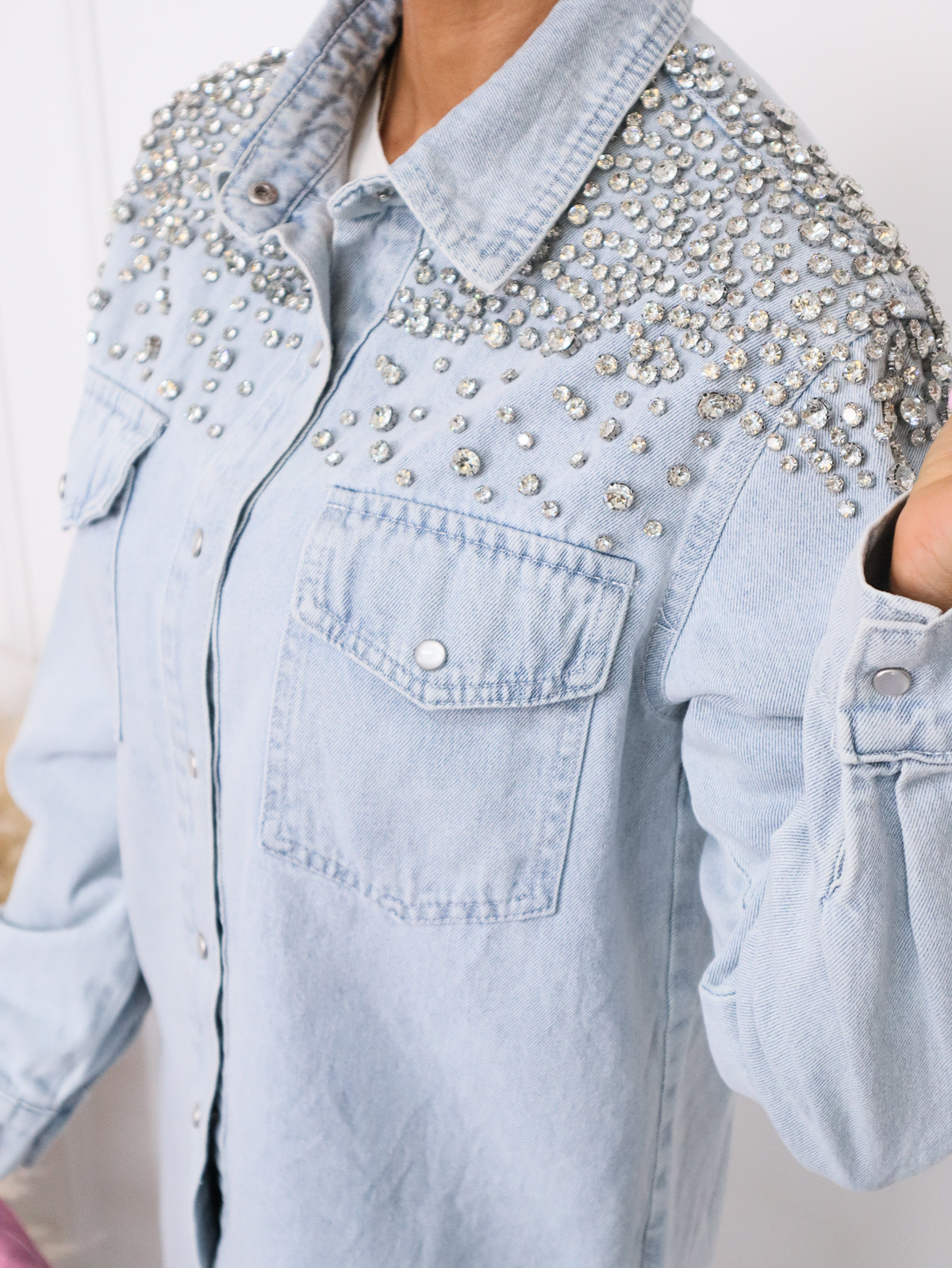 KOSZULA JEANSOWA Z OZDOBNYMI CYRKONIAMI