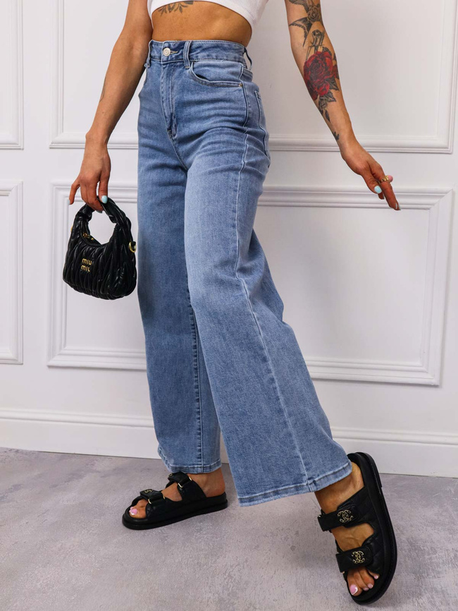 Spodnie jeansowe z wysokim stanem i szerokimi nogawkami.