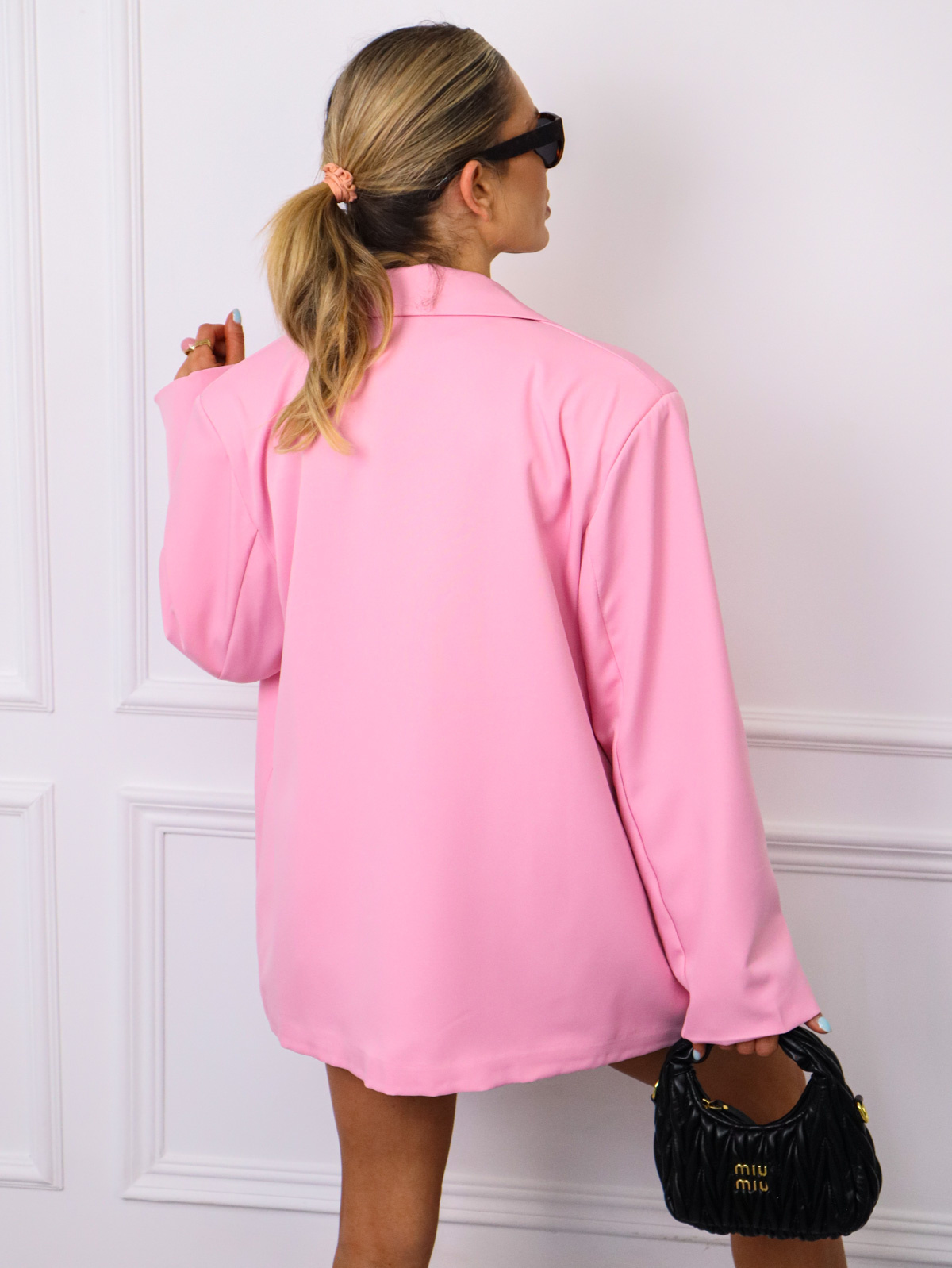 MARYNARKA OVERSIZE ZAPINANA NA GUZIKI- JASNORÓŻOWA