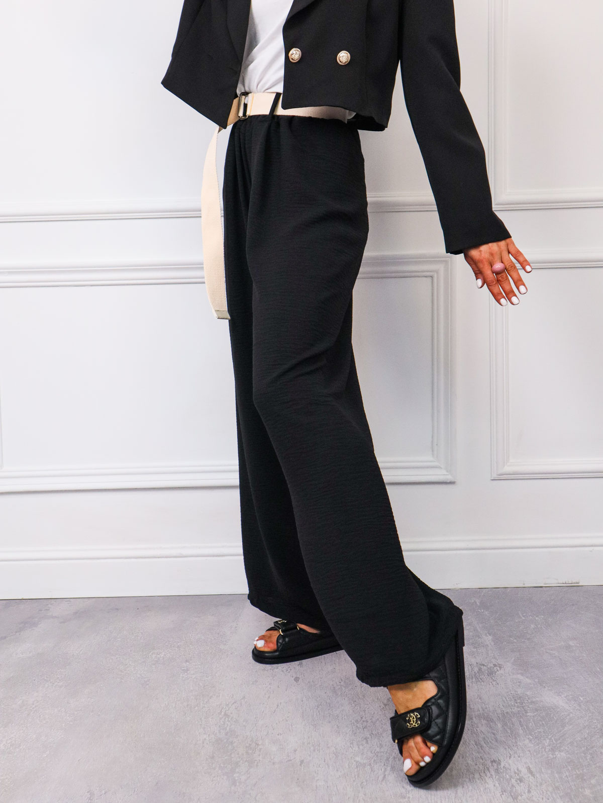 SPODNIE Z SZEROKIMI NOGAWKAMI+ PASEK- CZARNE