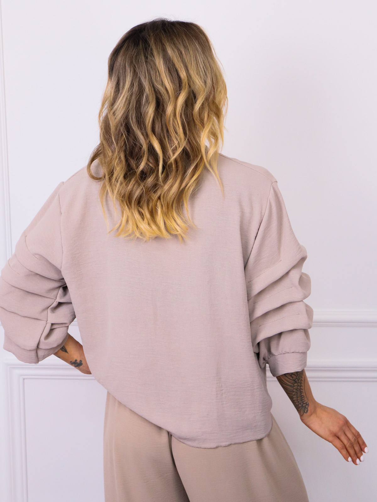 BLUZKA ZE ZŁOTYMI GUZIKAMI I RĘKAWEM FALBANĄ- FANGO