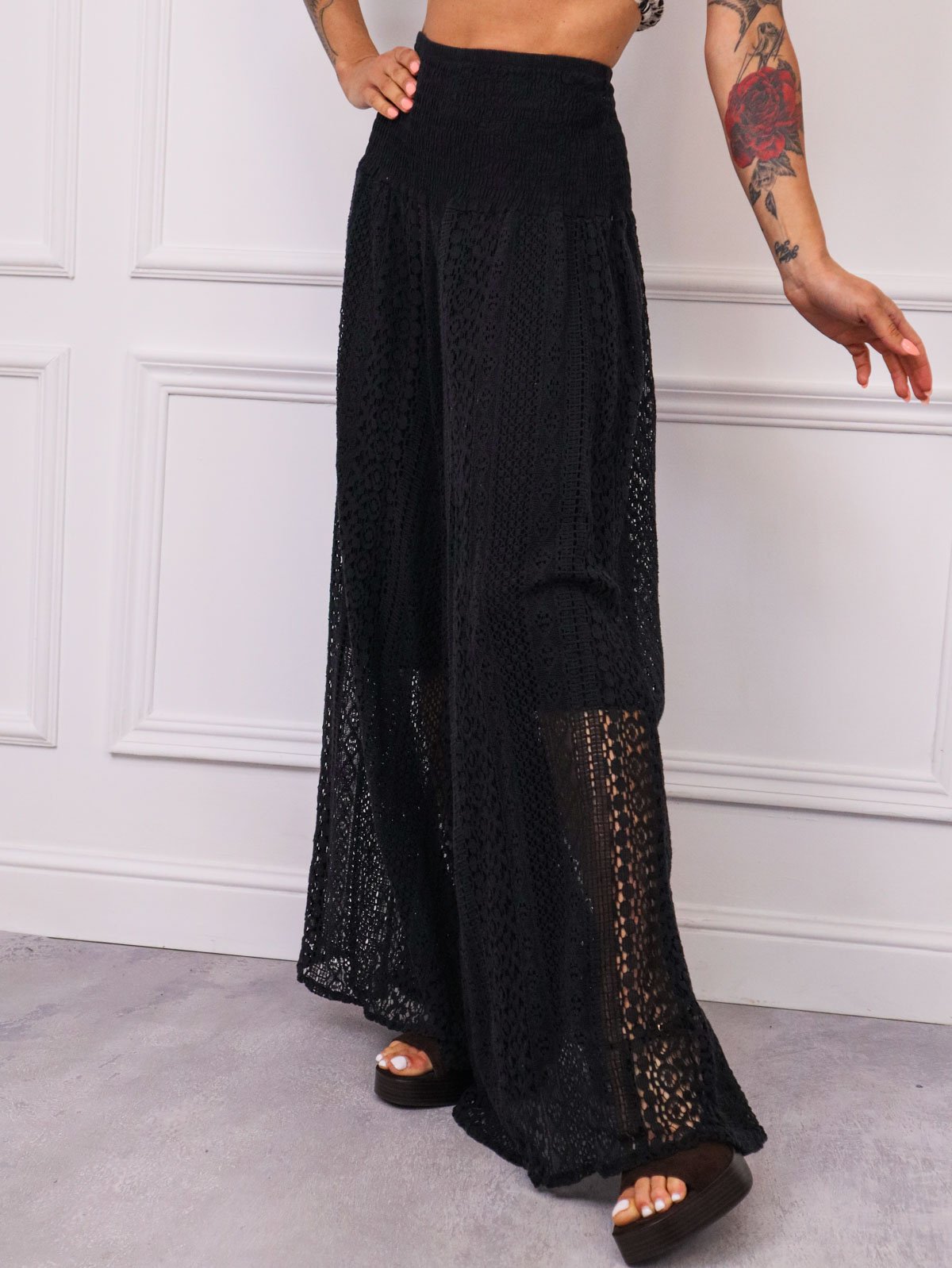 SPODNIE Z KORONKOWYMI NOGAWKAMI I SZEROKIM PASEM- CZARNE