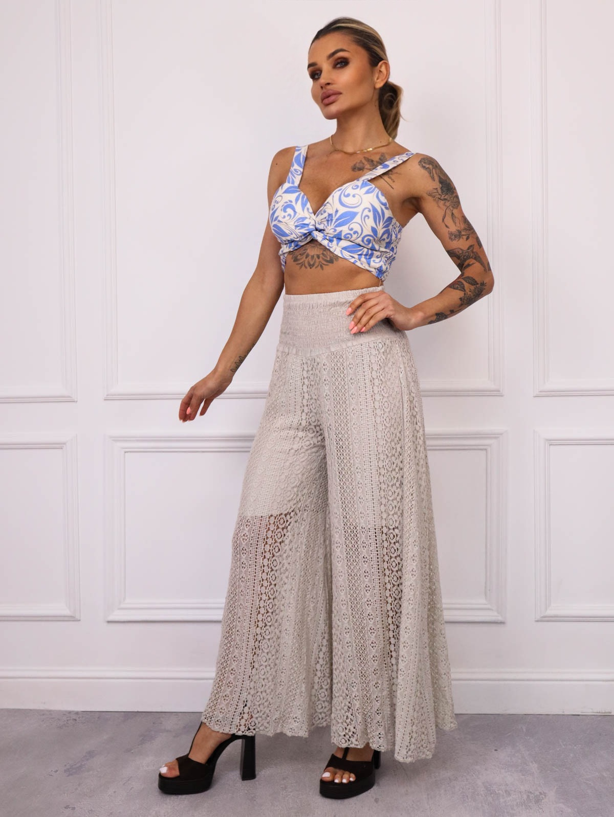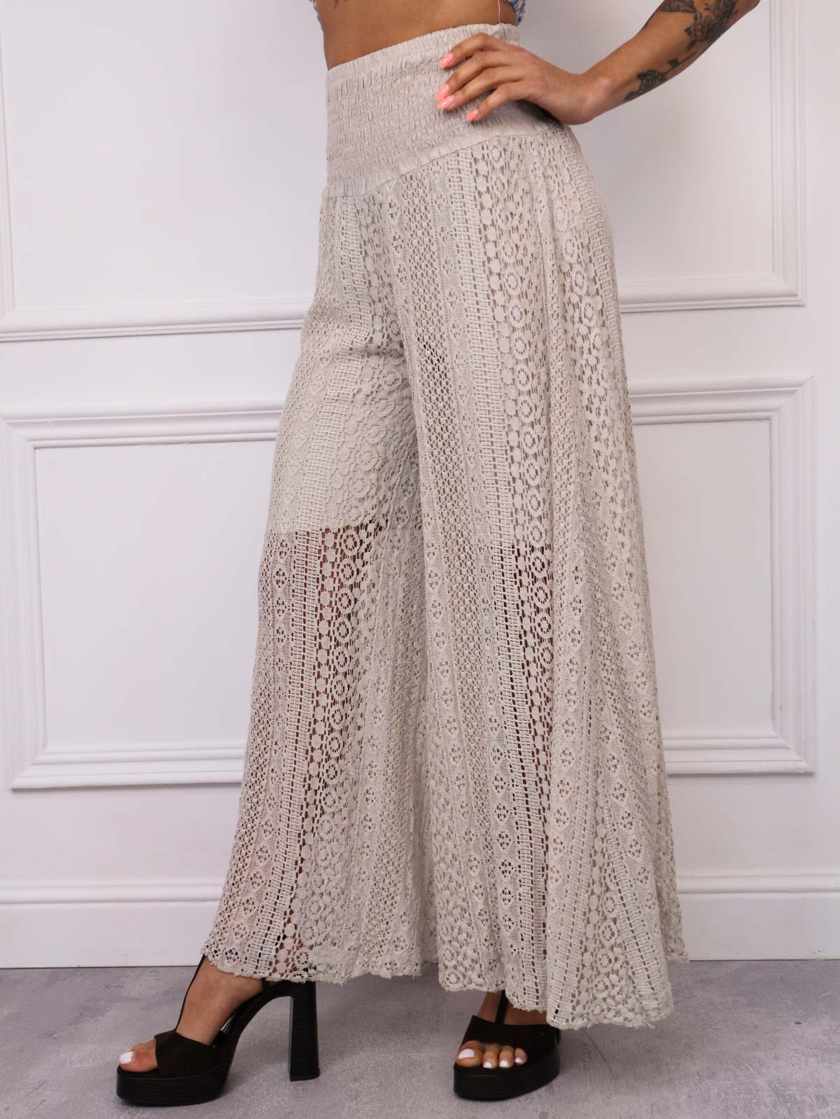 SPODNIE Z KORONKOWYMI NOGAWKAMI I SZEROKIM PASEM- BEŻOWE