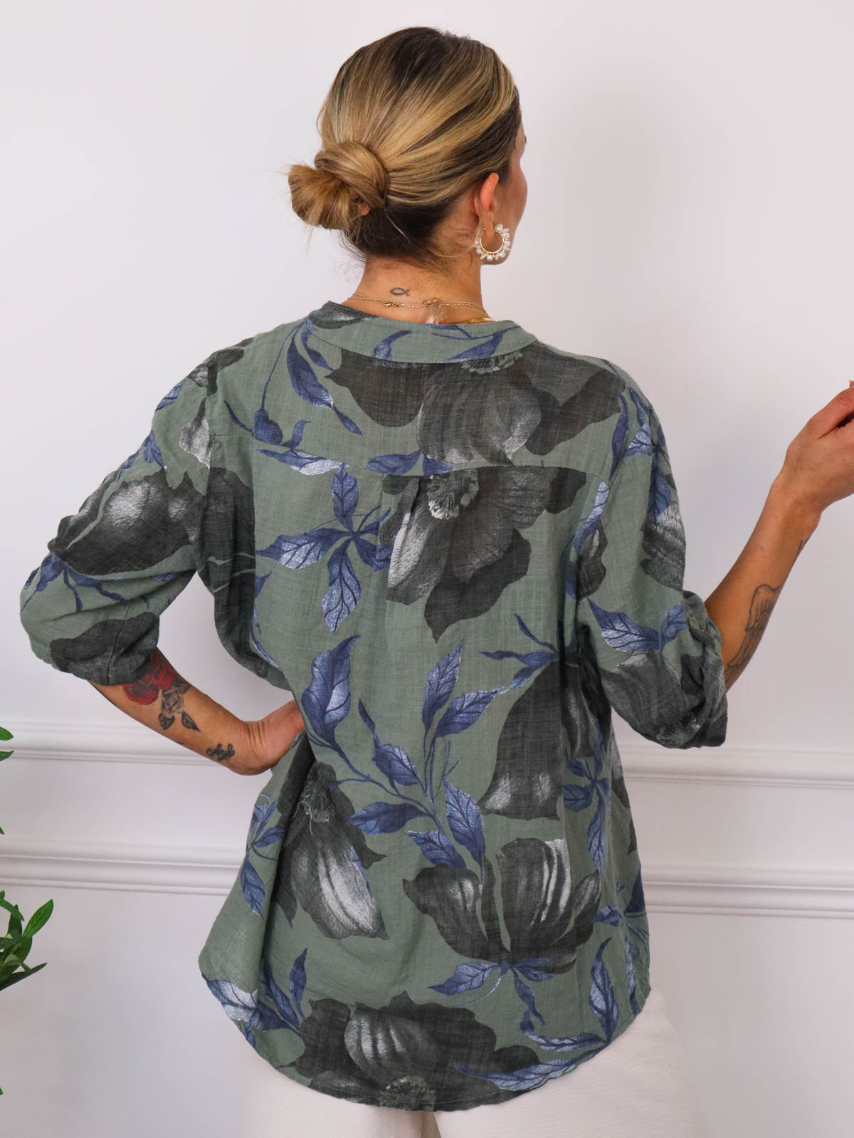 Koszula zapinana na guziki w kwieciste wzory. Wykonana z wysokiej jakości materiałów.