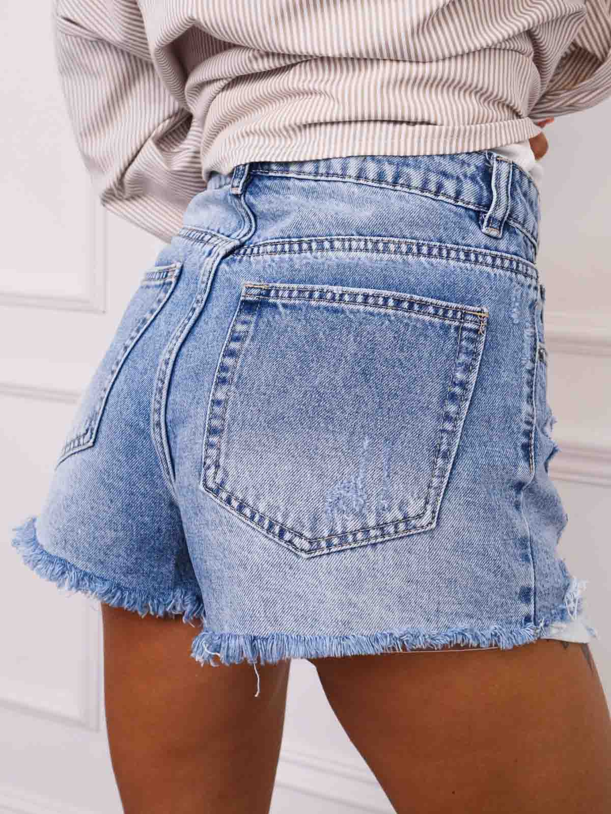 Szorty jeansowe z przetarciami i wysokim stanem.