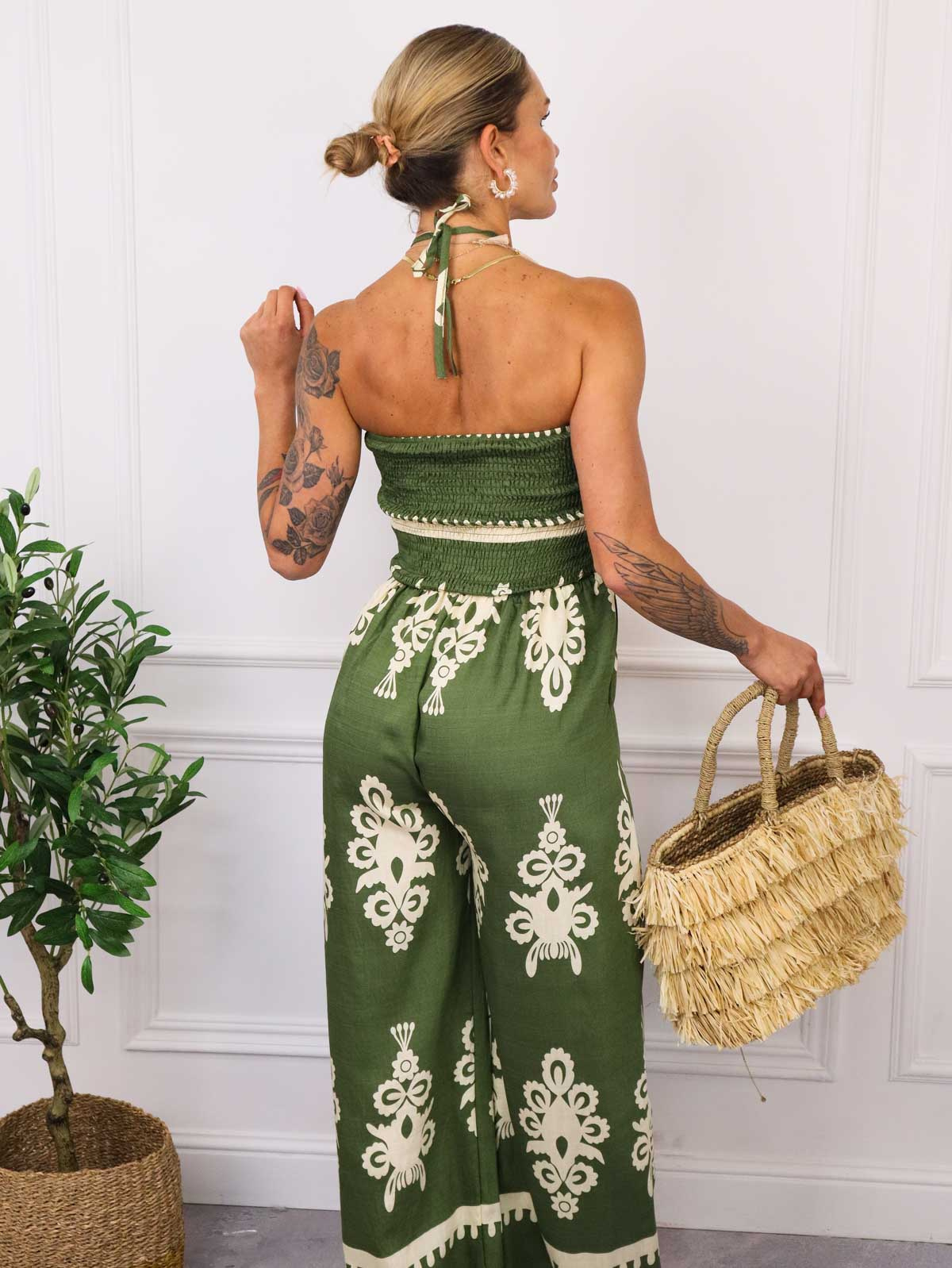 KOMBINEZON WZORZYSTY BEZ RAMIĄCZEK- ZIELONY
