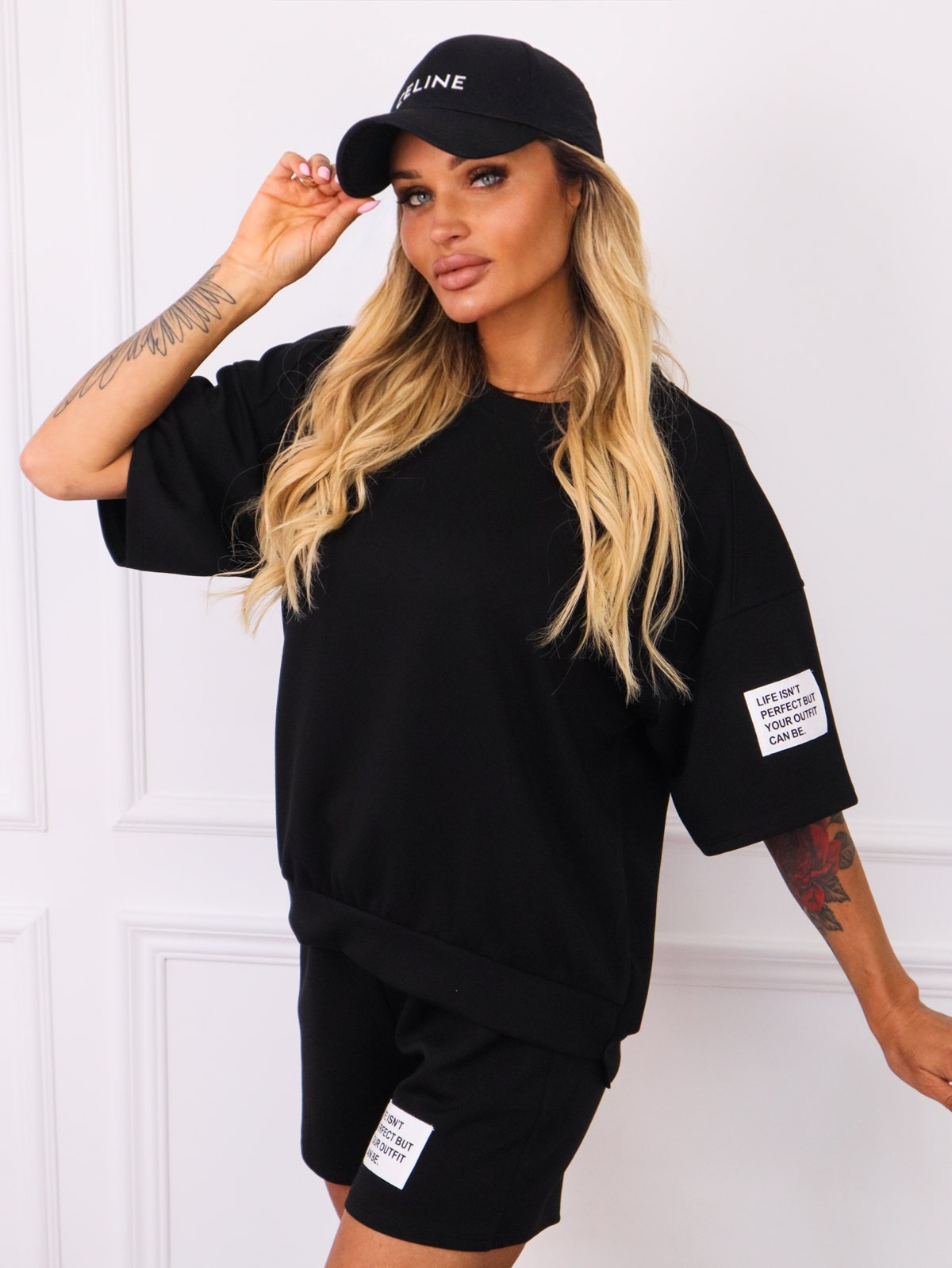 KOMPLET SZORTY+ T-SHIRT Z NASZYWKĄ- CZARNY