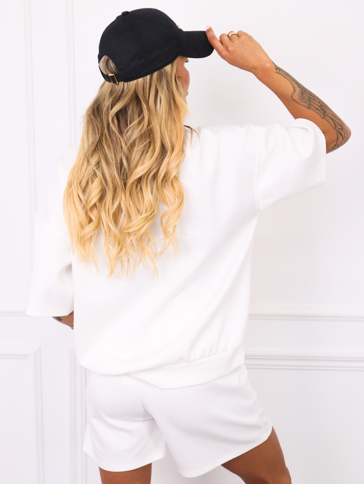 KOMPLET SZORTY+ T-SHIRT Z NASZYWKĄ- BIAŁY