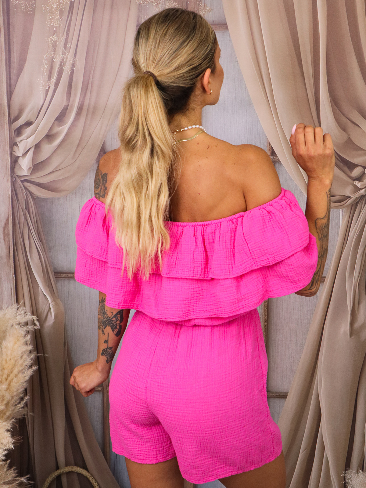 KOMBINEZON MUŚLINOWY HISZPANKA Z FALBANĄ- RÓŻOWY