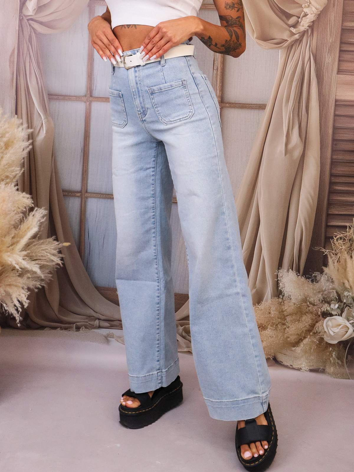 SPODNIE JEANSOWE Z KIESZENIAMI Z PRZODU I OZDOBNYM PASKIEM