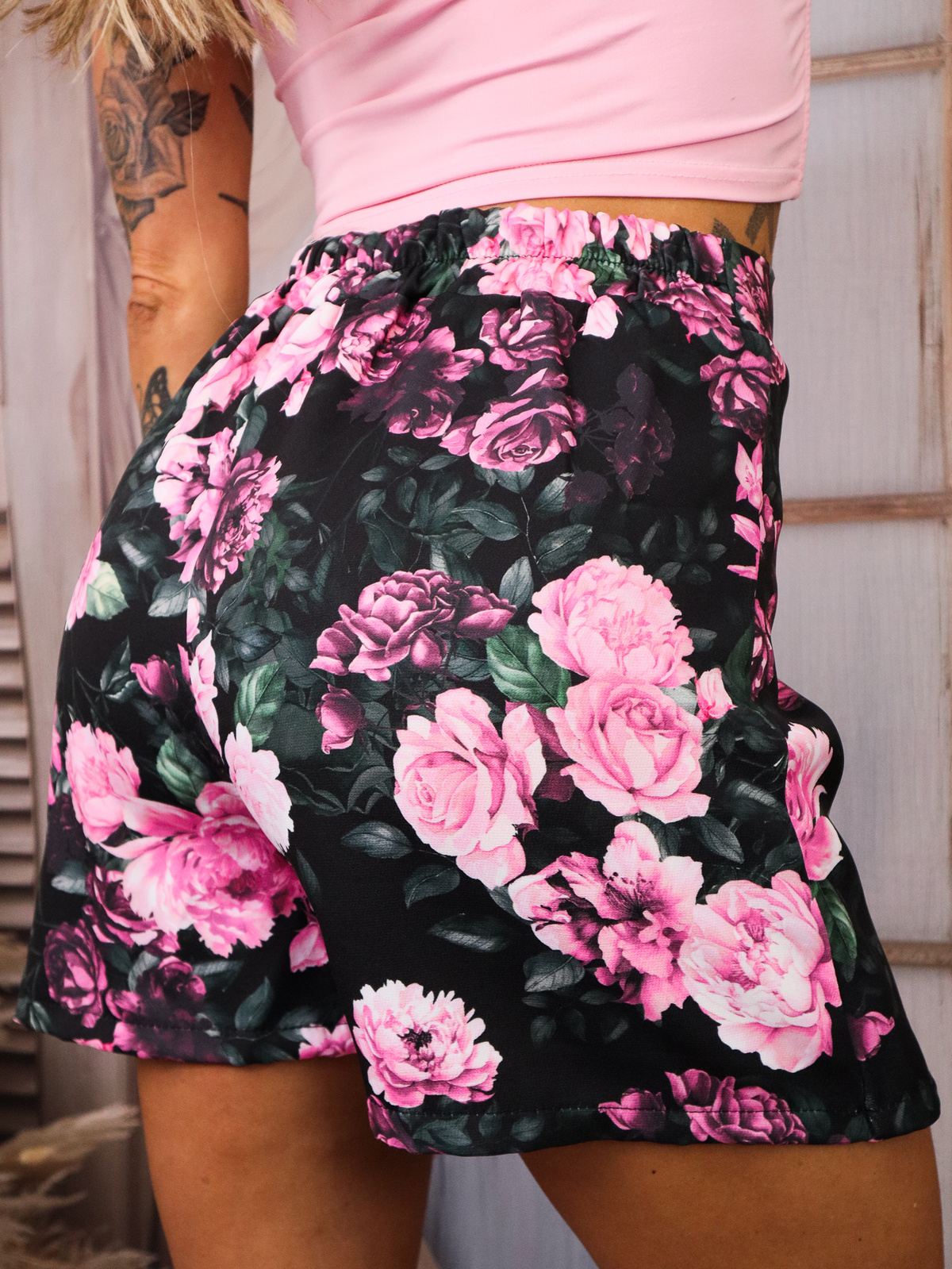 SPÓDNICO-SPODENKI W KWIATY- CZARNE