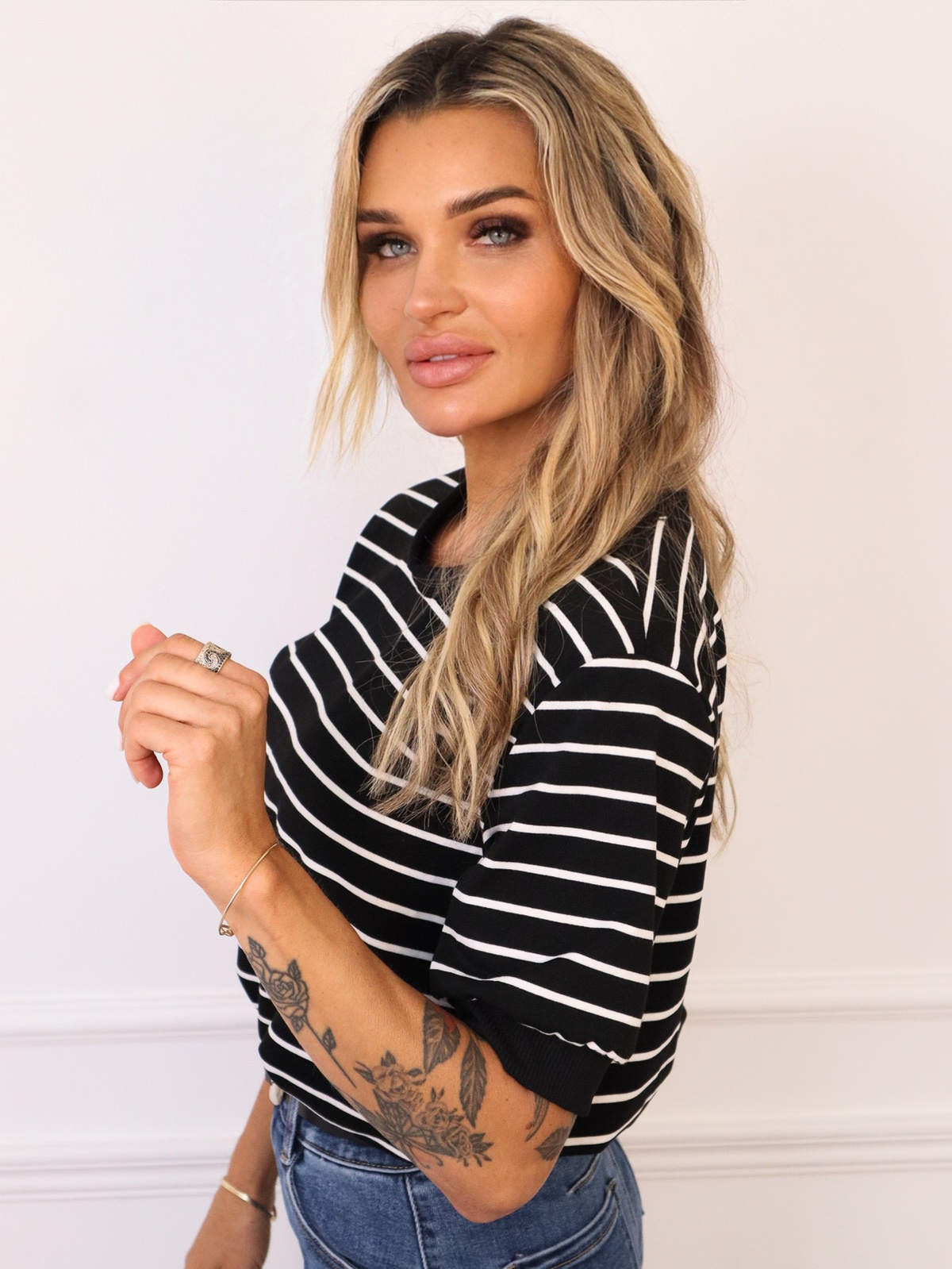 T-SHIRT OVERSIZE W PASKI- CZARNY