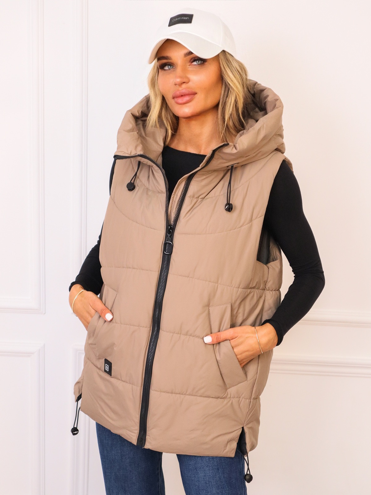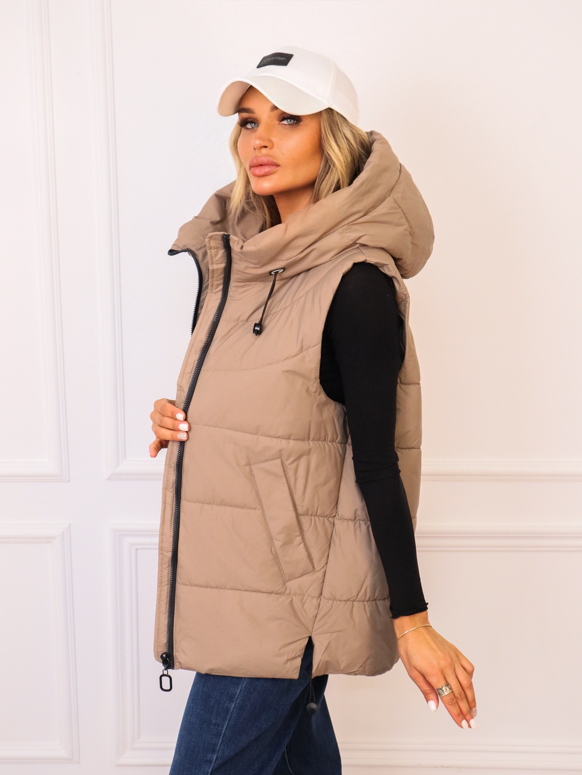 ASYMETRYCZNA KAMIZELKA Z KAPTUREM I ŚCIAGACZEM NA DOLE- CAPPUCCINO