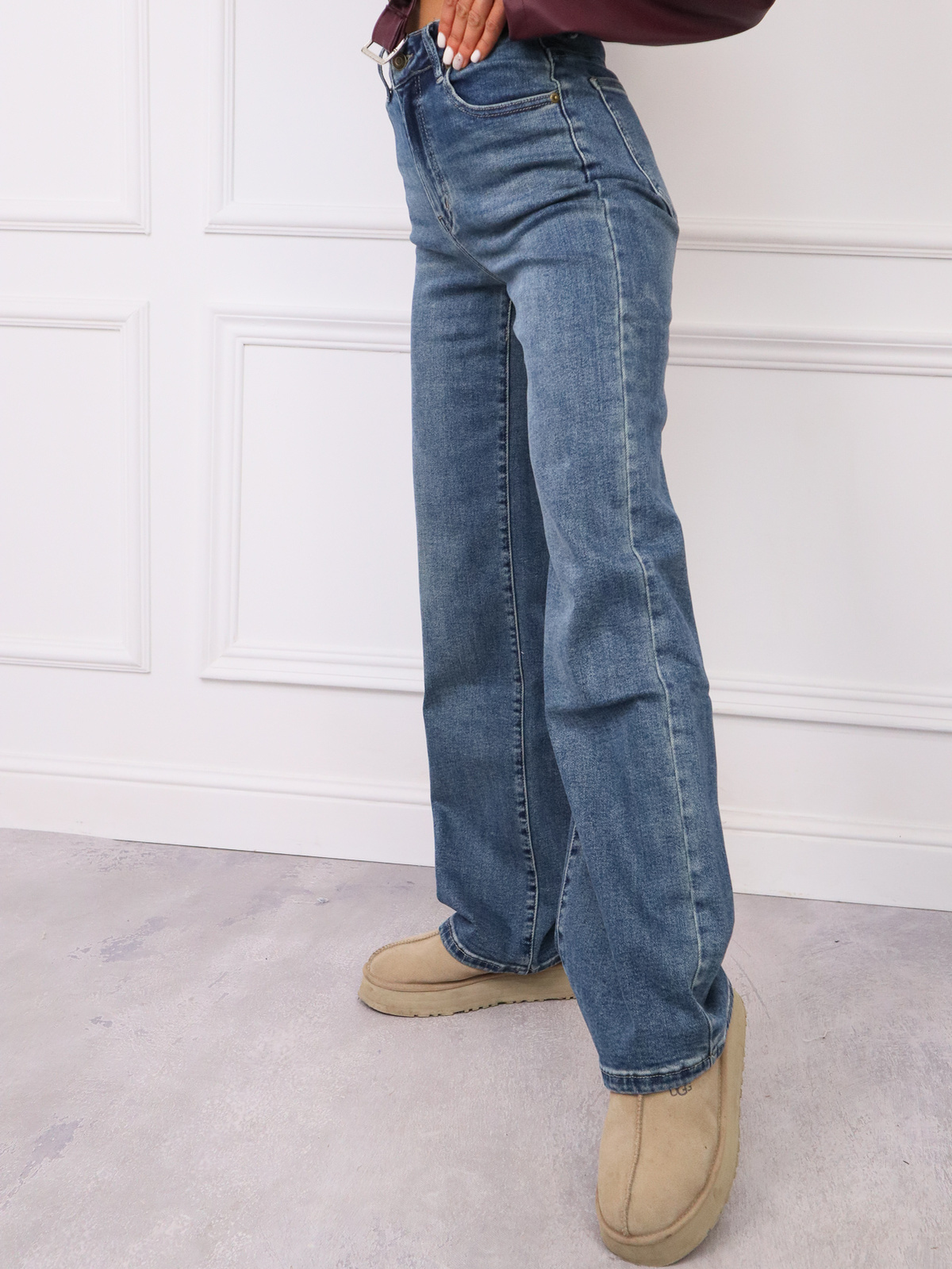 SPODNIE JEANSOWE Z WYSOKI STANEM I SZEROKIMI NOGAWKAMI