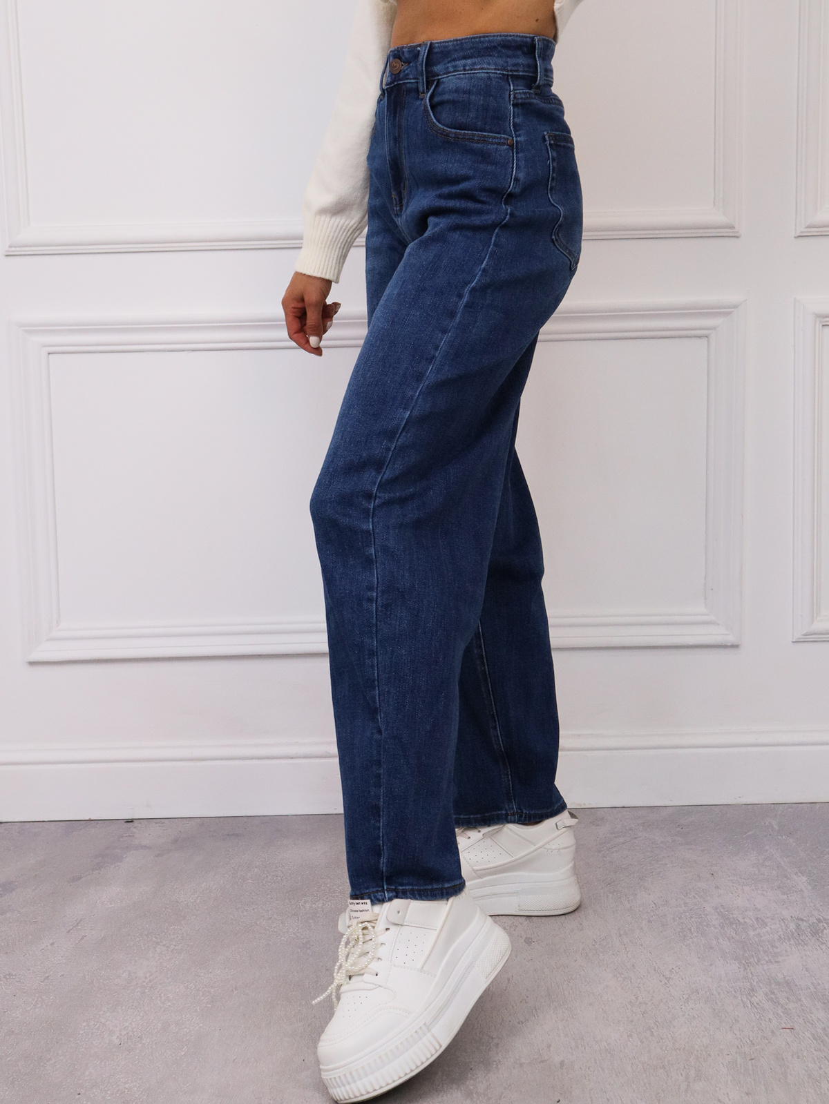 SPODNIE JEANSOWE LOOSE  Z WYSOKIM STANEM- GRANATOWE