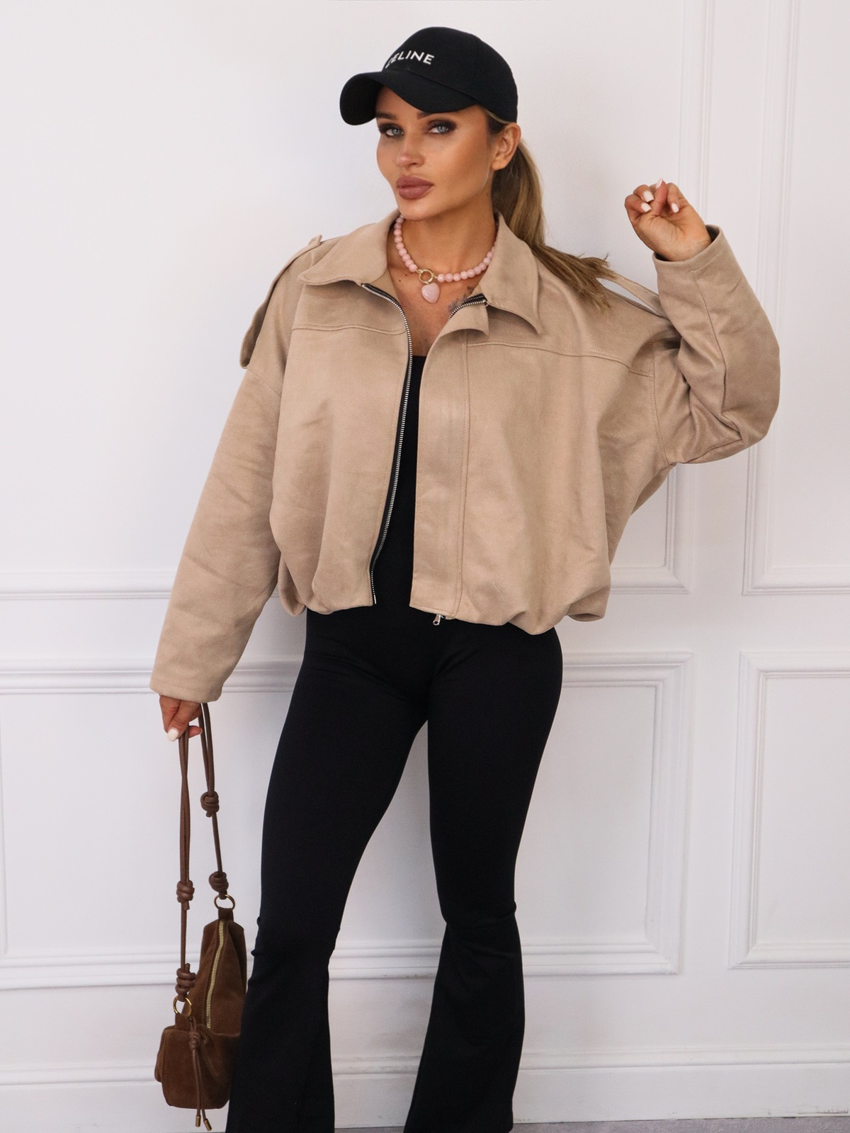 KURTKA OVERSIZE Z IMITACJI ZAMSZU ZAPINANA NA ZAMEK- BEŻOWA