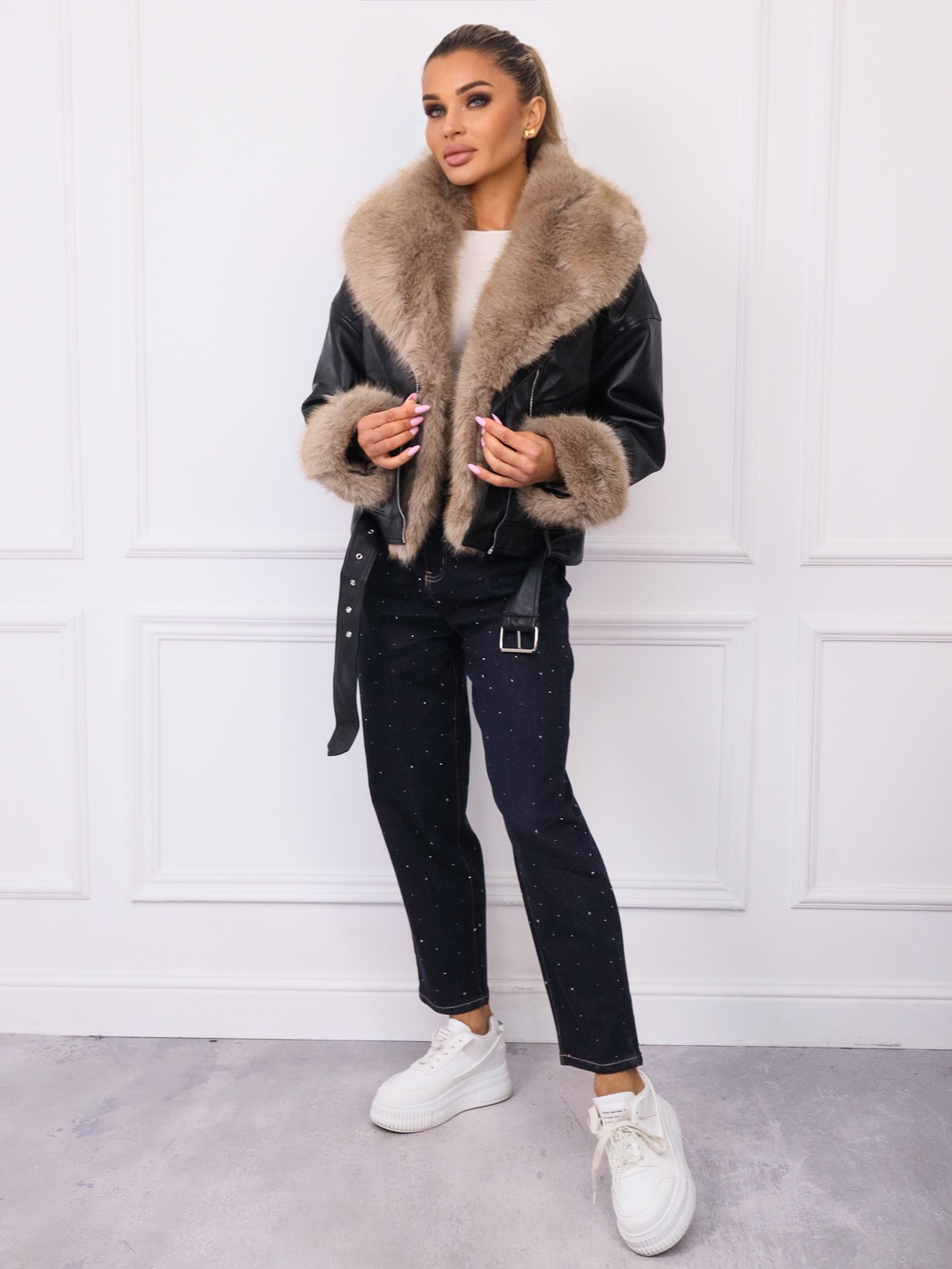 KURTKA Z EKO SKÓRY Z ODPINANYM BRĄZOWYM FUTERKIEM