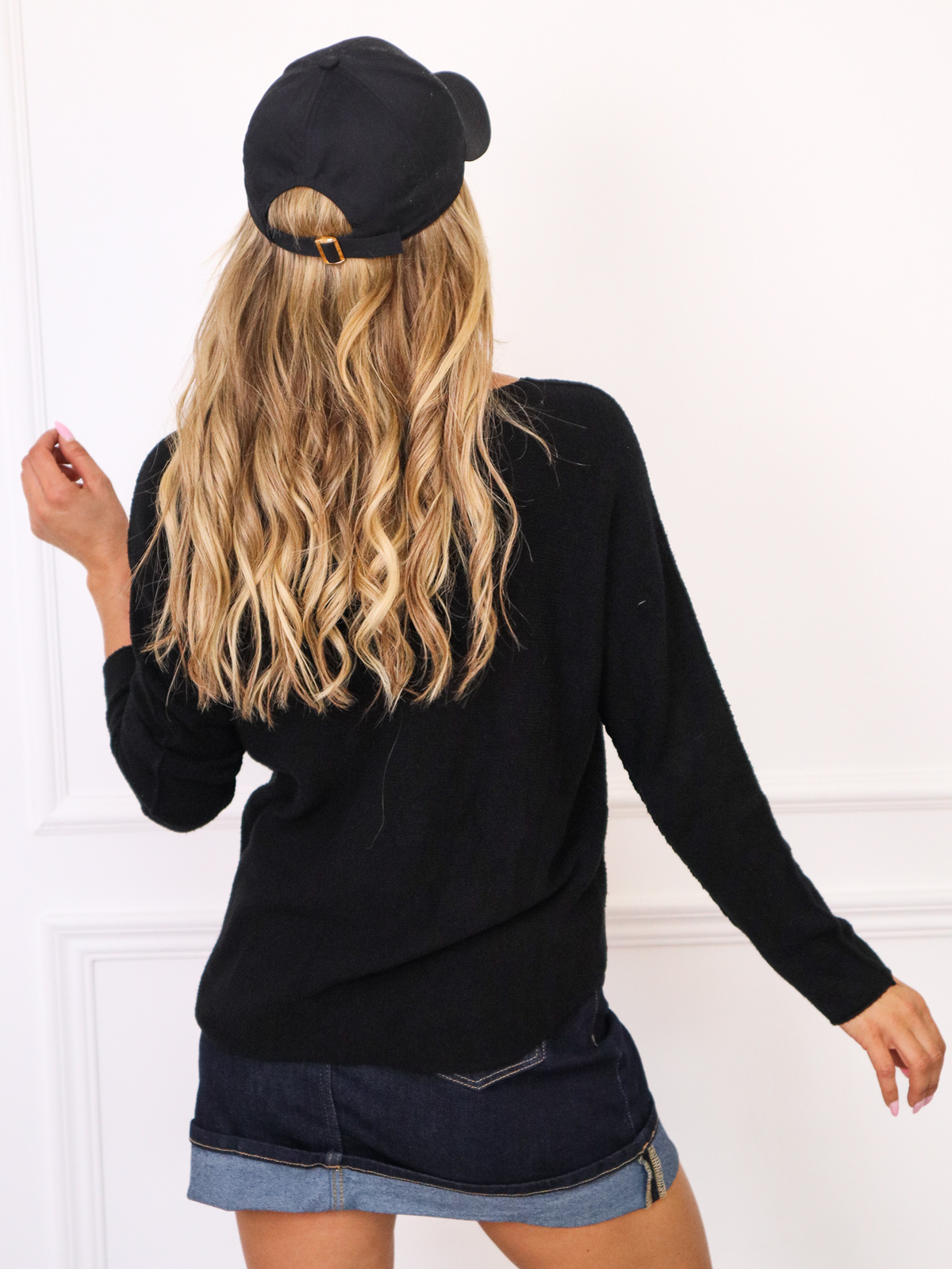 SWETER Z OKRĄGŁYM DEKOLTEM- CZARNY