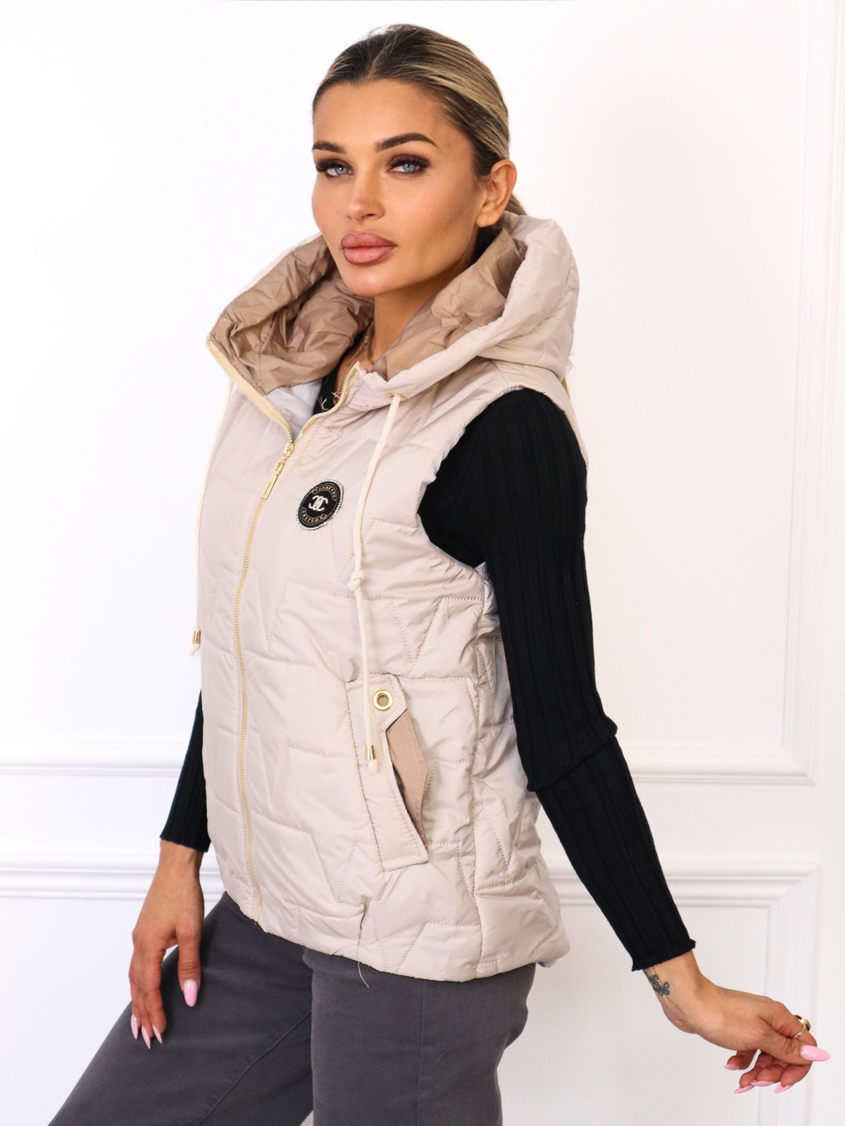 KAMIZELKA Z KAPTUREM I NASZYWKĄ- BEŻOWA