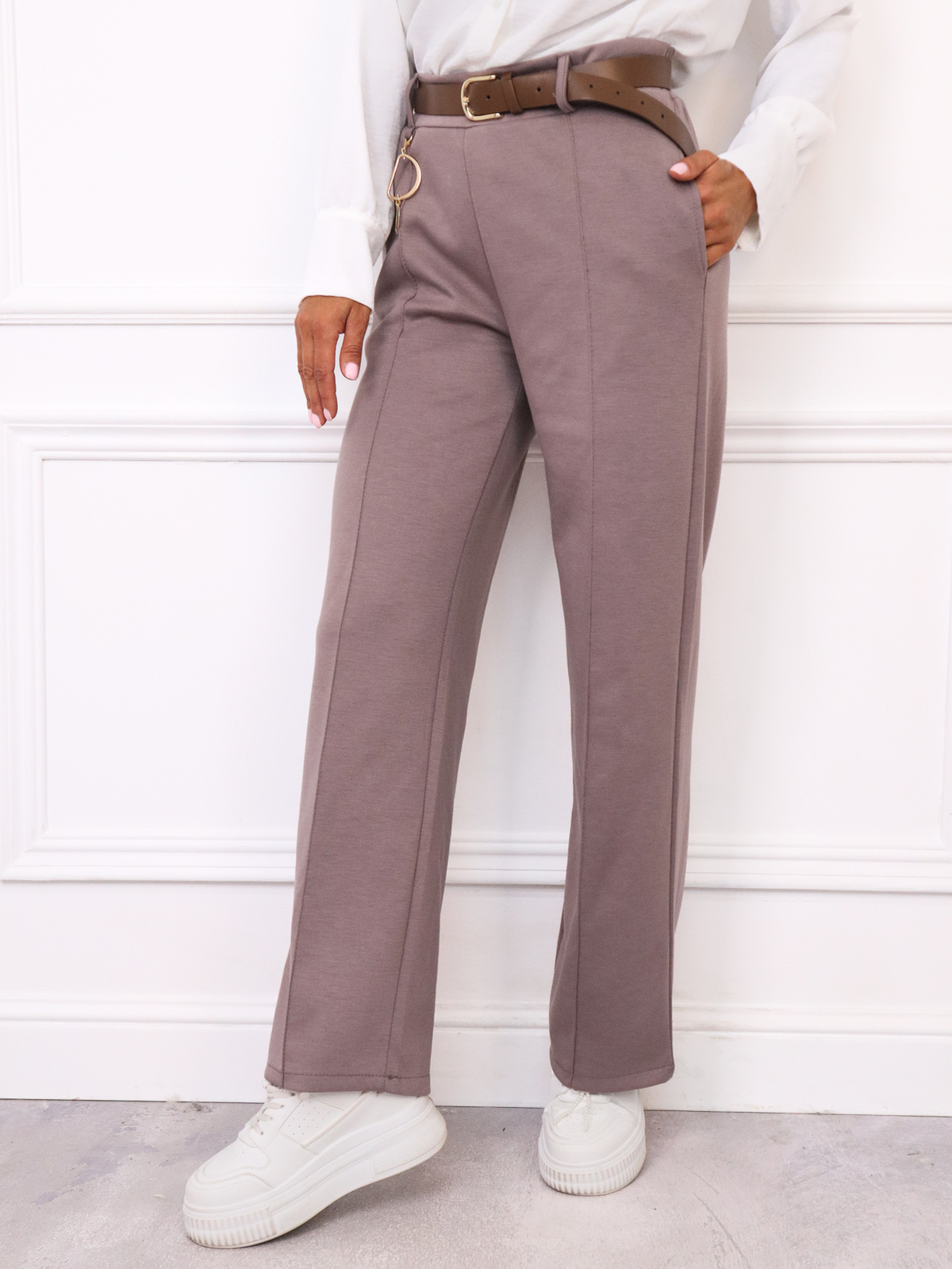 SPODNIE MATERIAŁOWE Z SZEROKIMI NOGAWKAMI+ PASEK- CAPPUCCINO