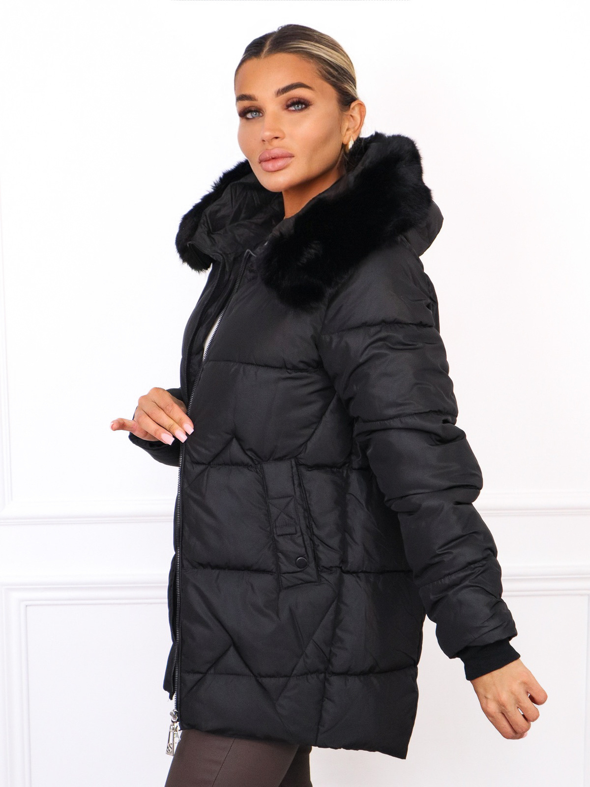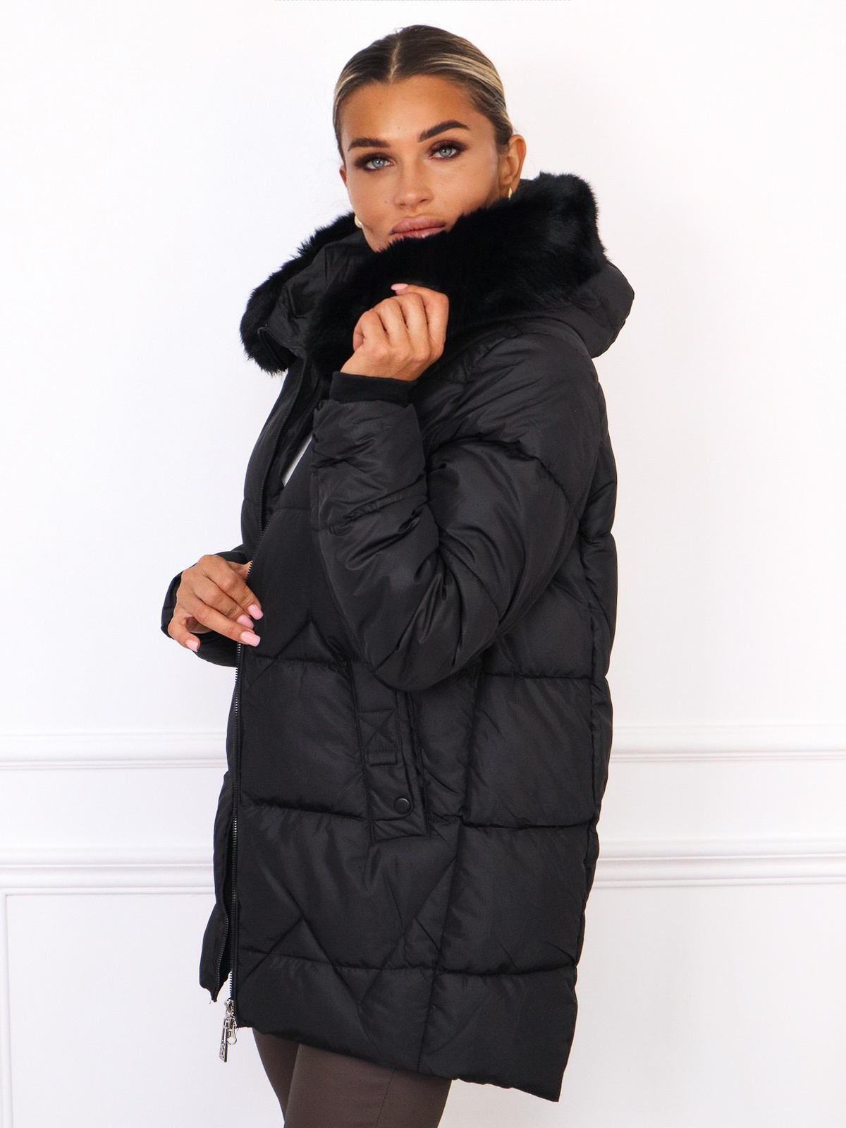 KURTKA PIKOWANA Z FUTERKIEM PRZY KAPTURZE- CZARNA