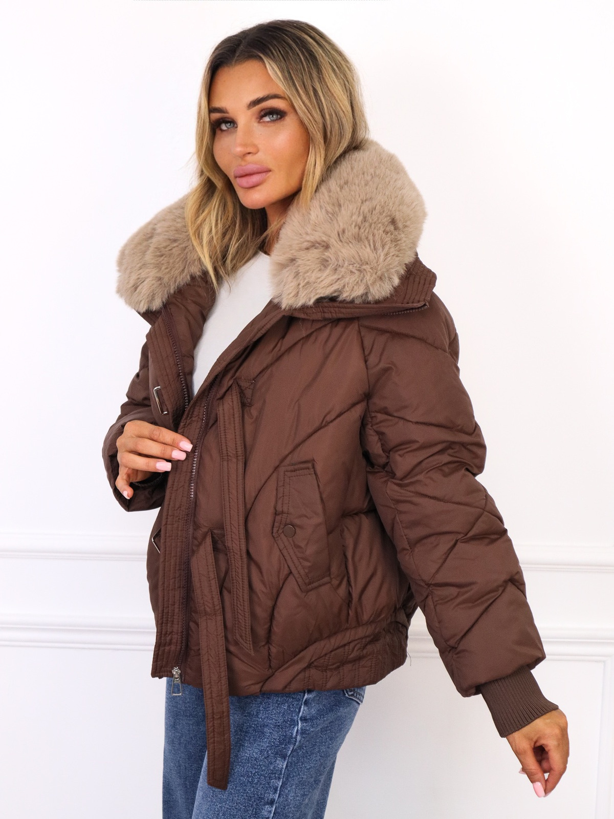 KURTKA Z FUTERKIEM NA KOŁNIERZU- CZEKOLADOWA