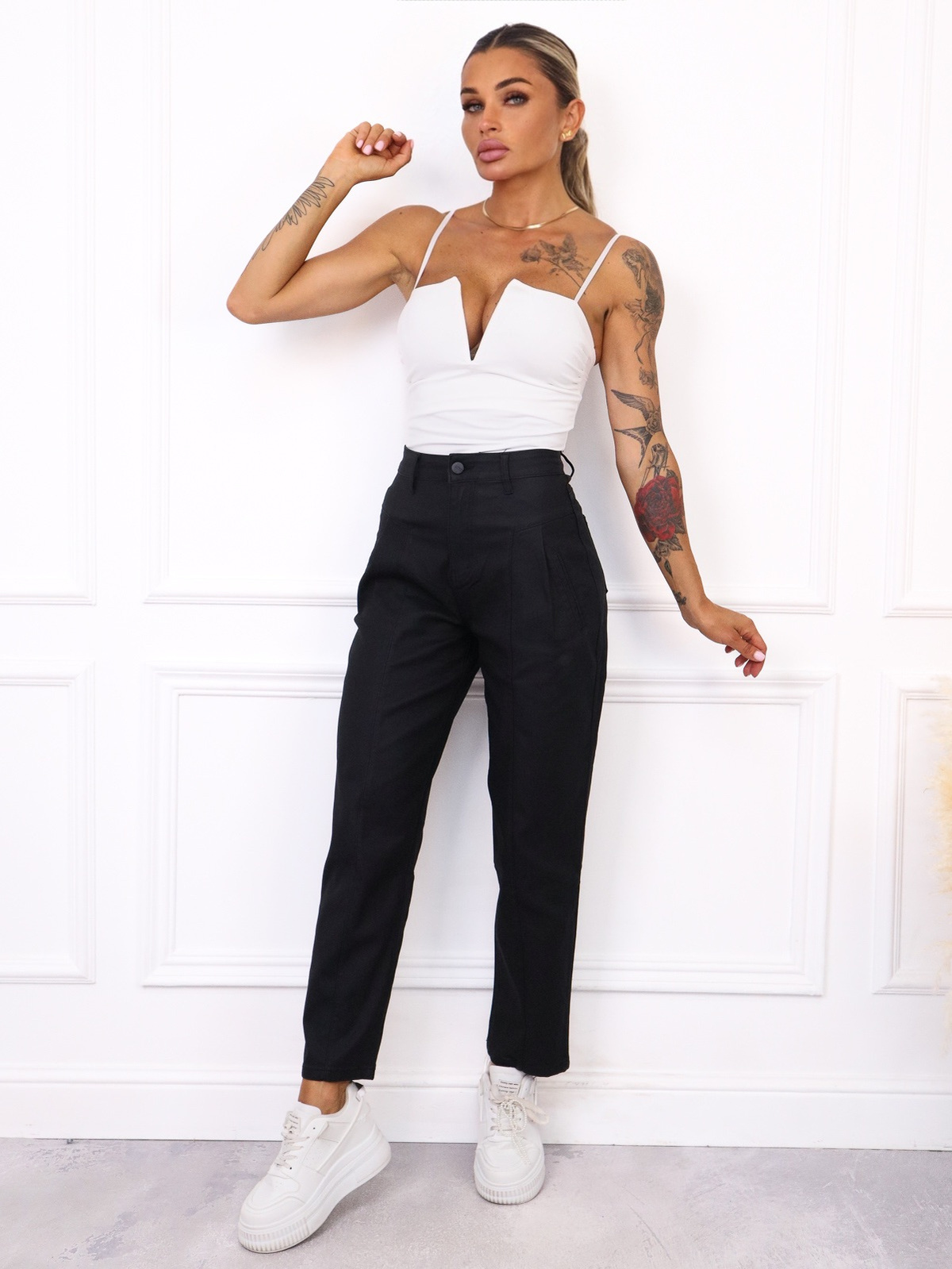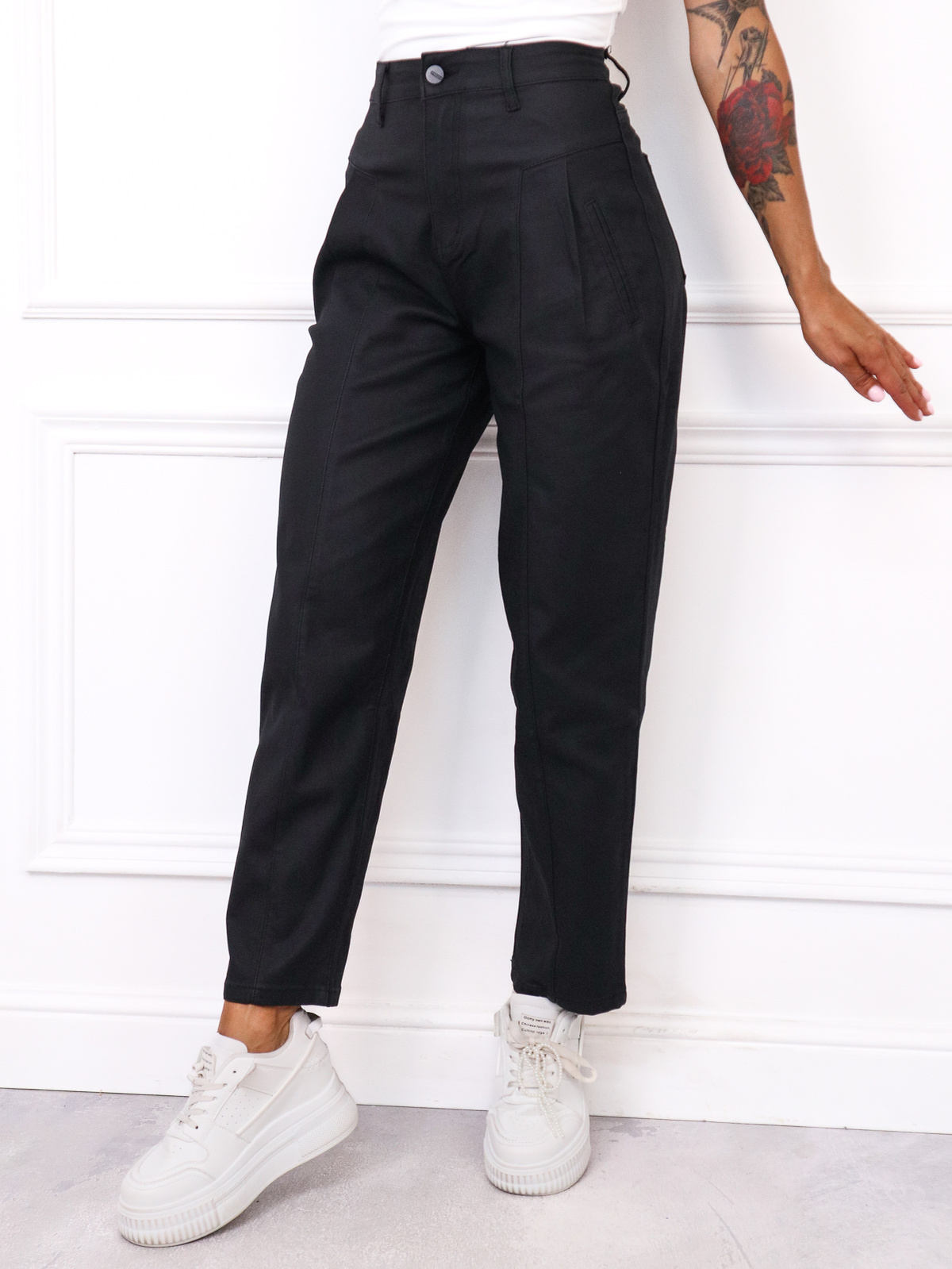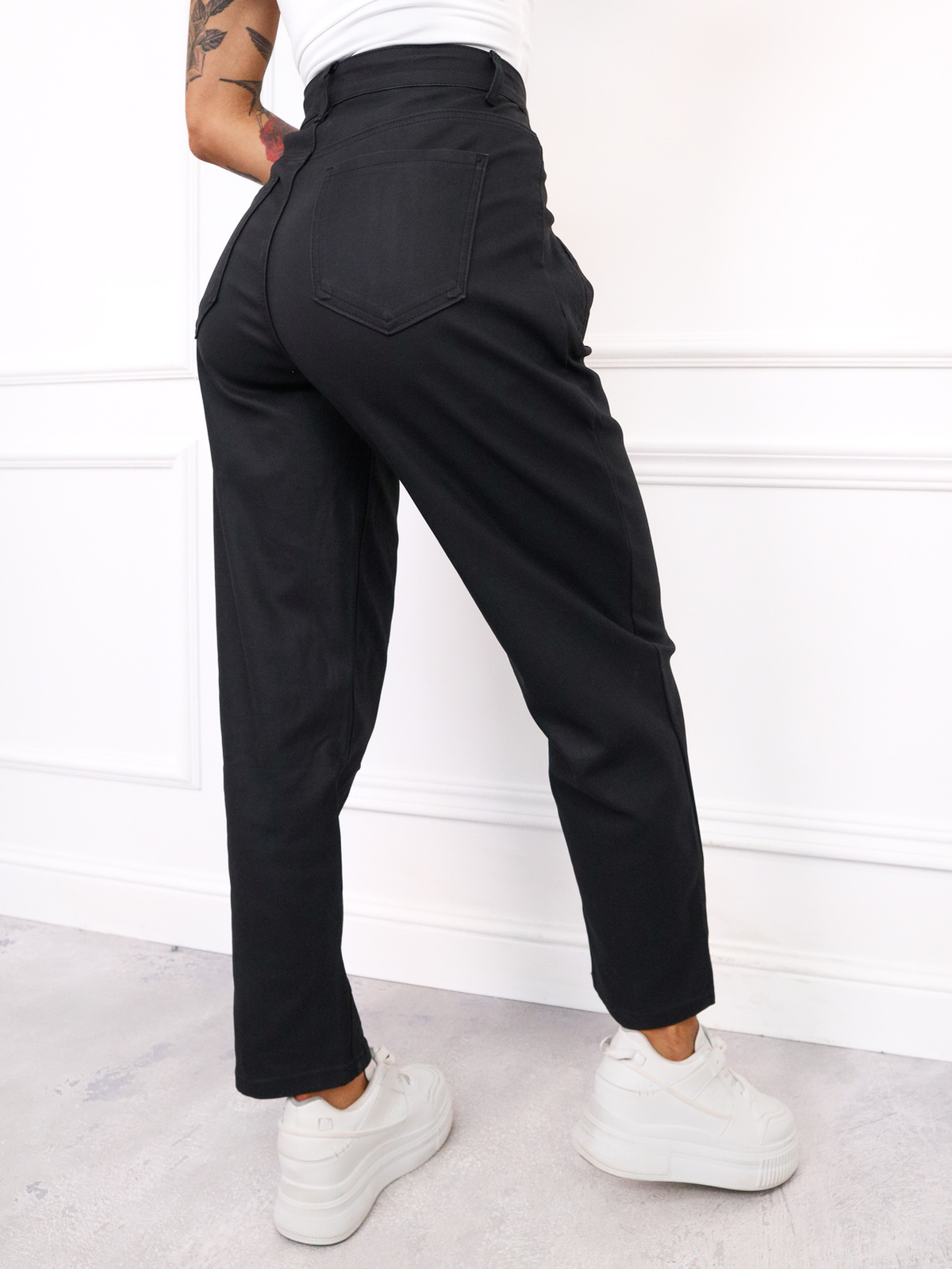 SPODNIE WOSKOWANE MOM FIT Z OZDOBNYMI PRZESZYCIAMI-CZARNE