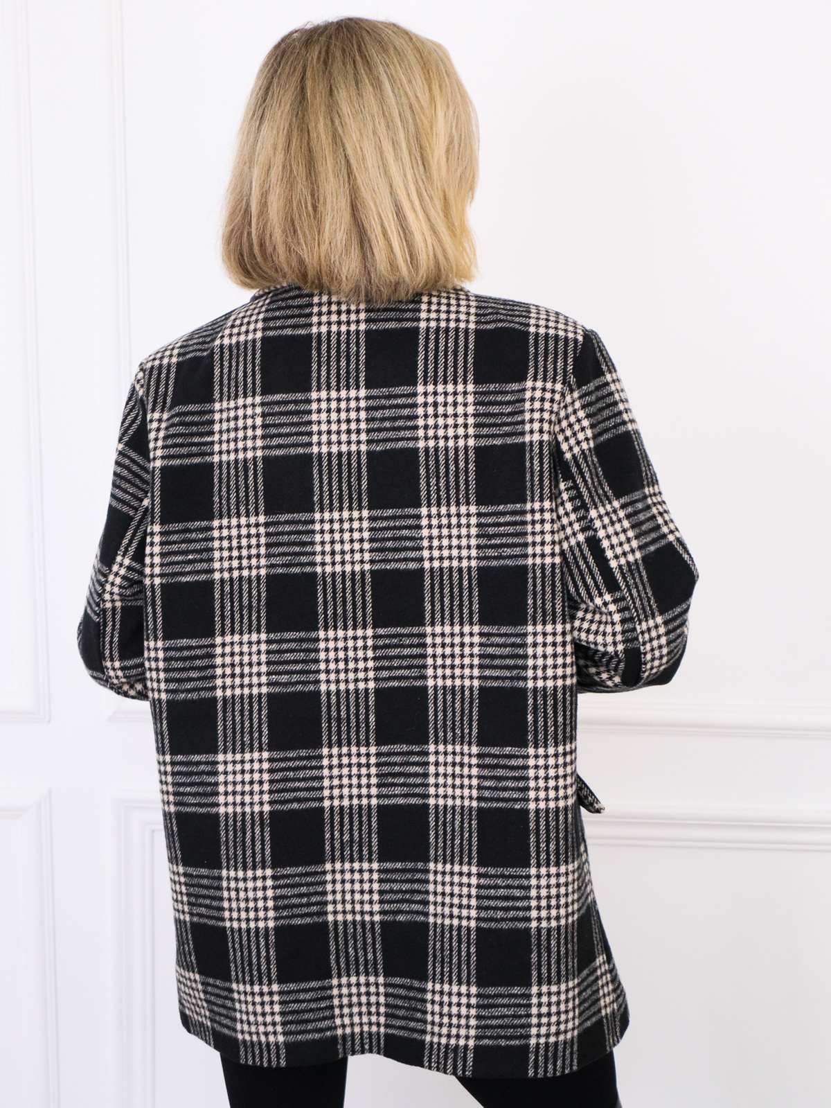 PŁASZCZ MARYNARKA ZAPINANY NA GUZIKI W KRATĘ- CZARNY