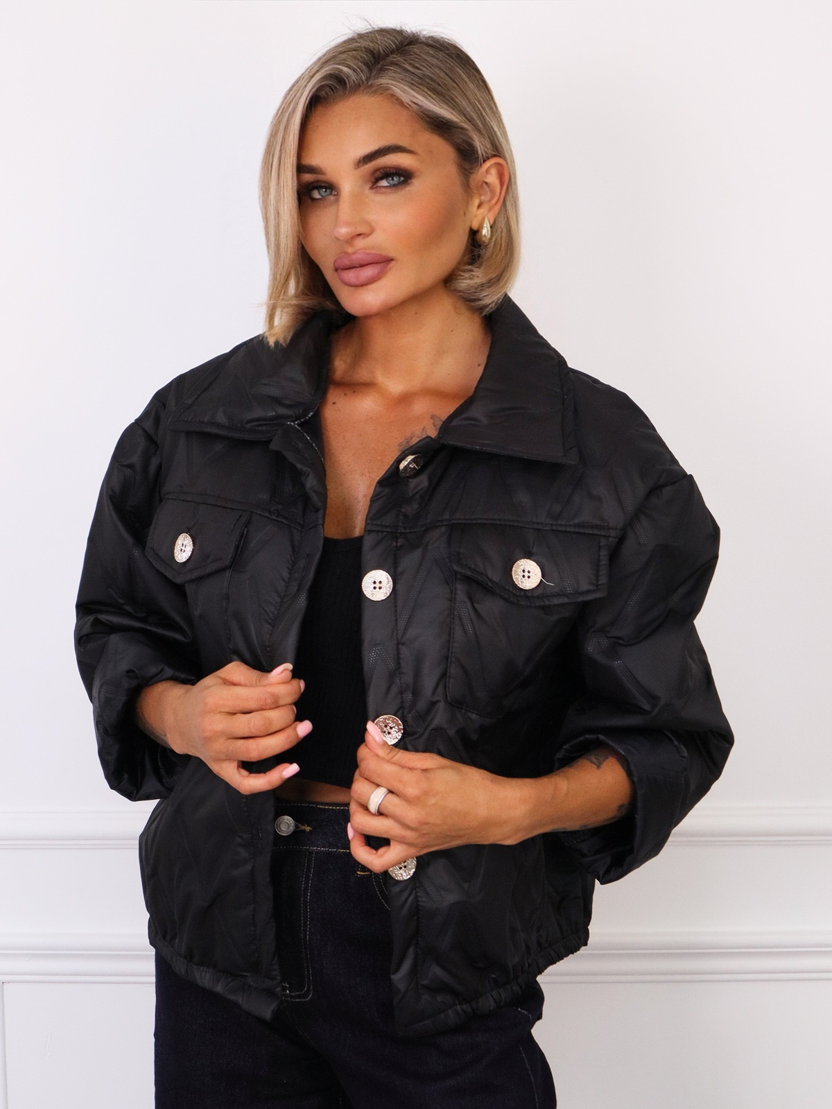 KURTKA PIKOWANA ZAPINANA NA ZŁOTE GUZIKI- CZARNA