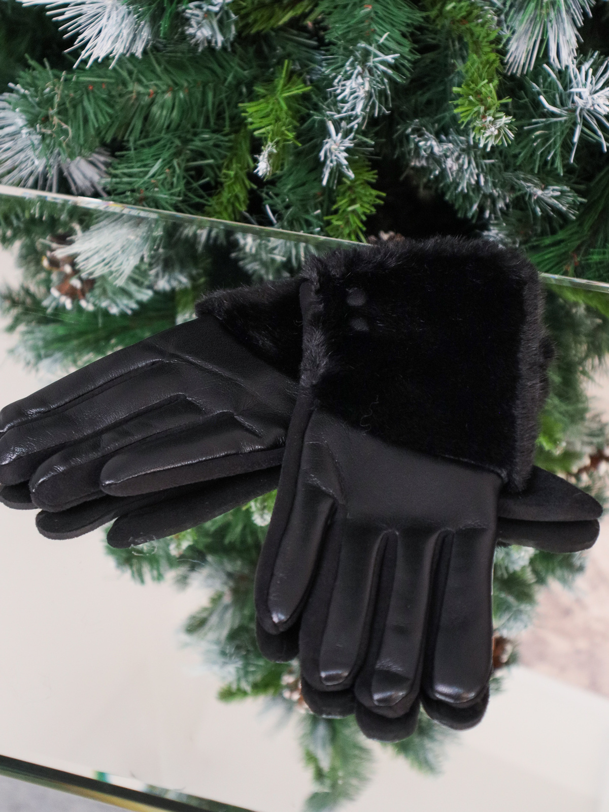 RĘKAWICZKI OCIEPLANE Z EKOSKÓRY I ZAMSZU Z FUTERKIEM- CZARNE