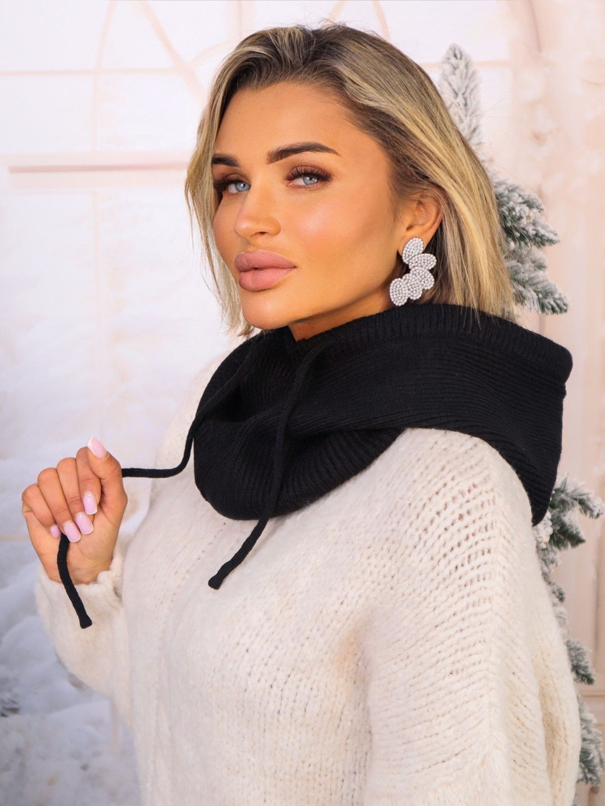 KOMINIARKA DZIANINOWA Z KAPTUREM-CZARNA