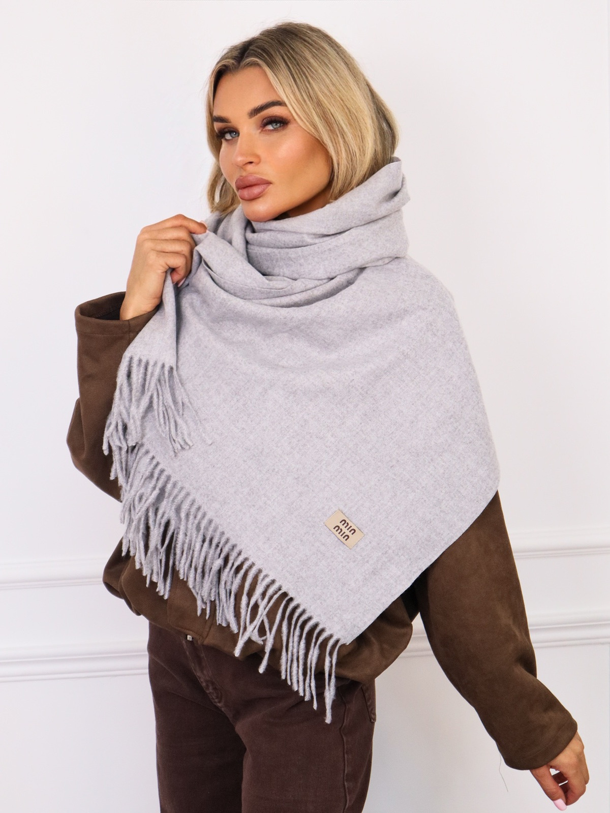 KLASYCZNY SZAL Z FRĘDZLAMI- SZARY