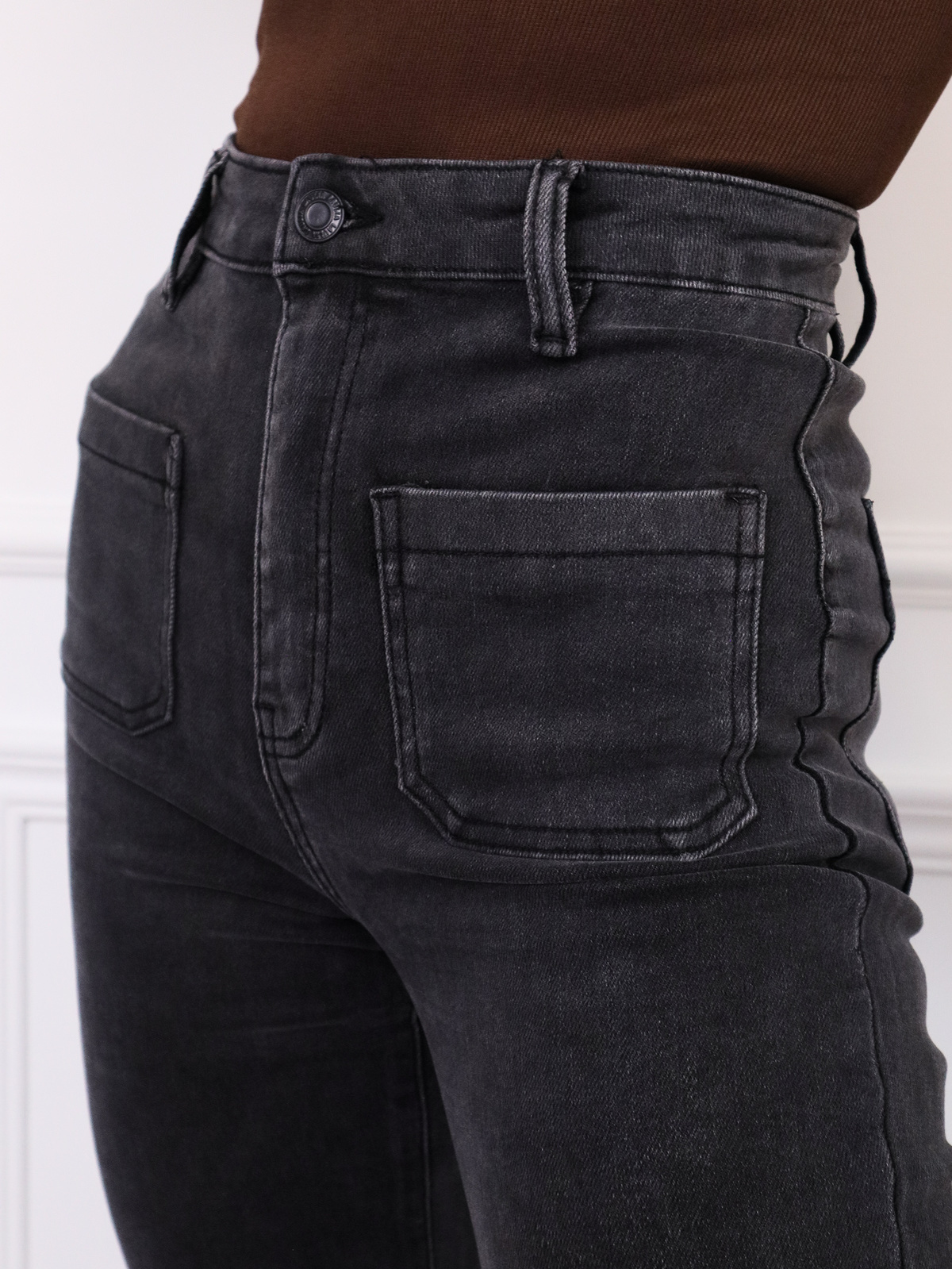 SPODNIE JEANSOWE DZWONY FLARE Z KIESZENIAMI Z PRZODU- CIEMNOSZARE