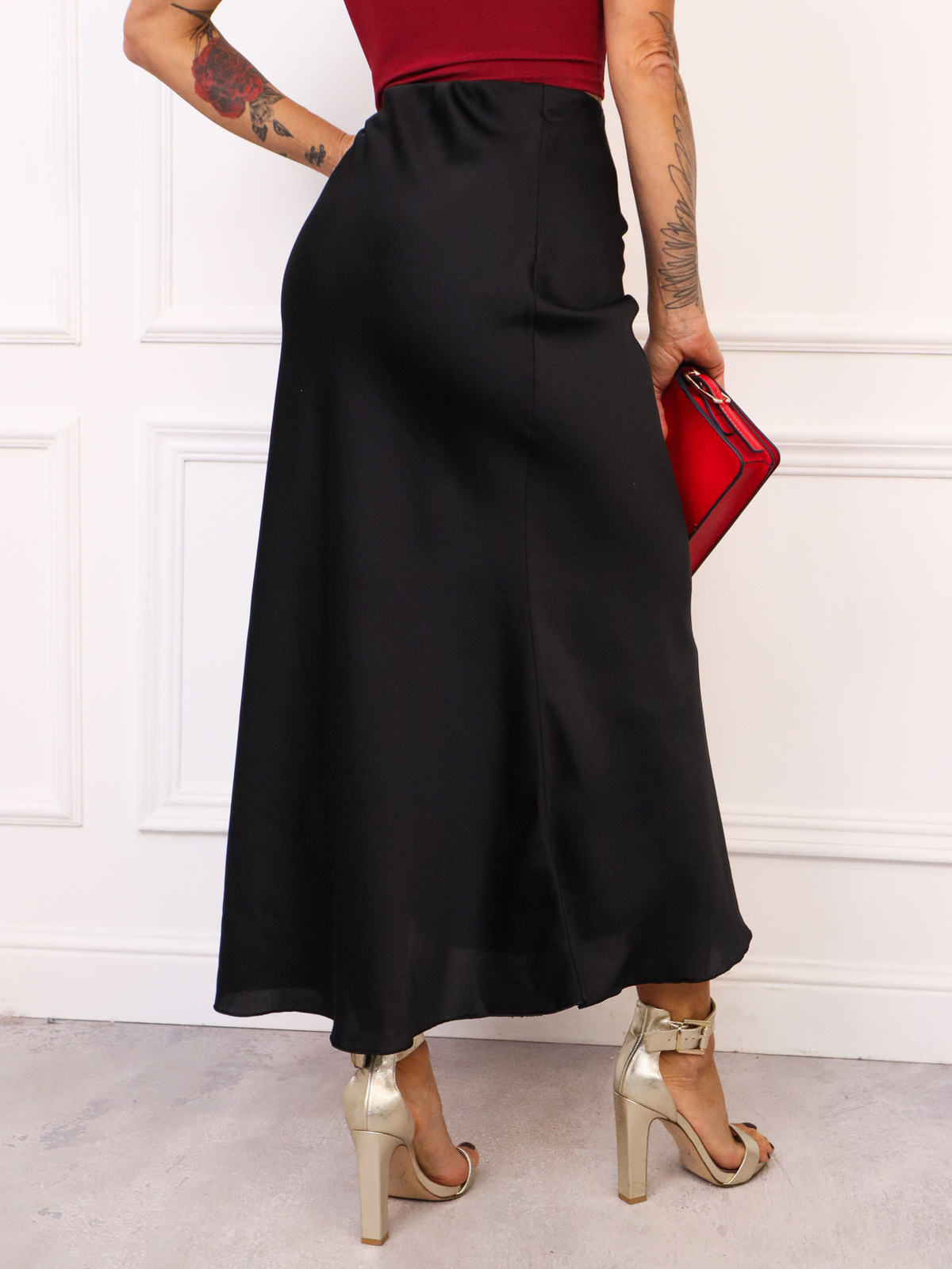 SATYNOWA SPÓDNICA Z GUMKĄ W PASIE - CZARNA
