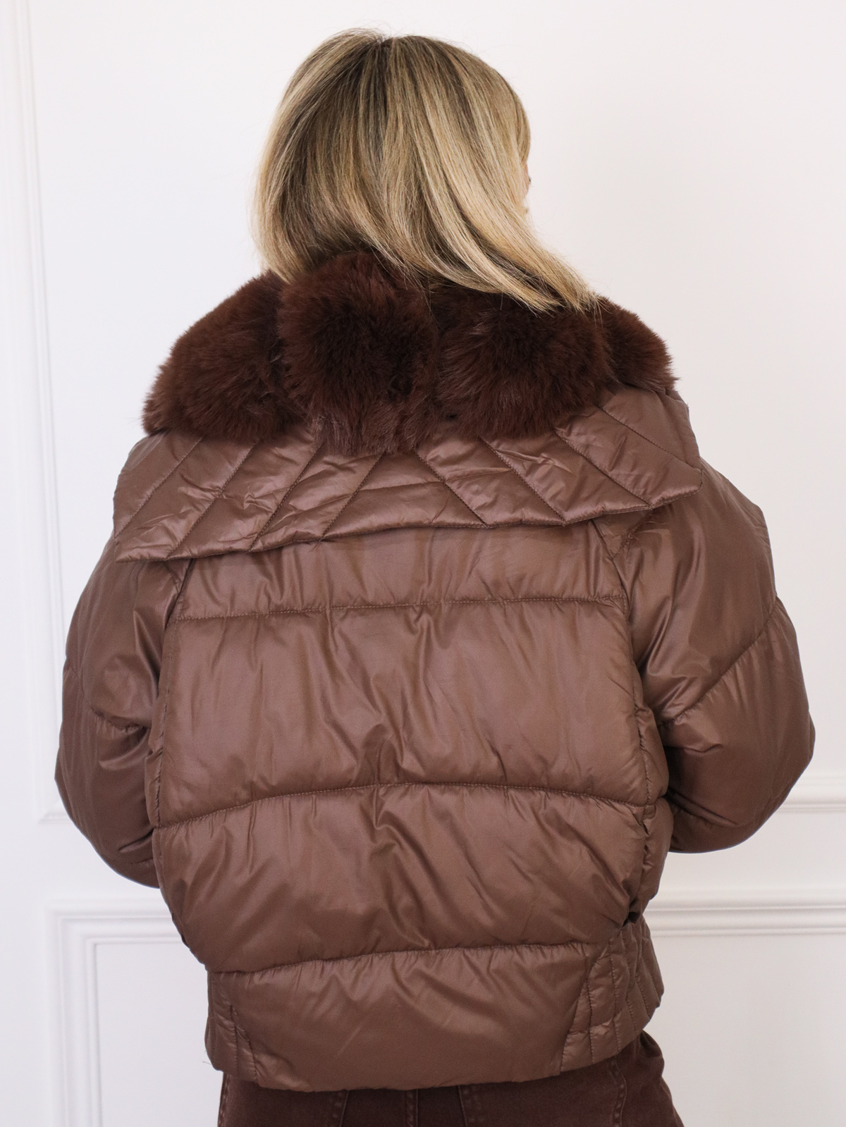 KURTKA KRÓTKA Z ODPINANYM FUTERKIEM- CZEKOLADOWA