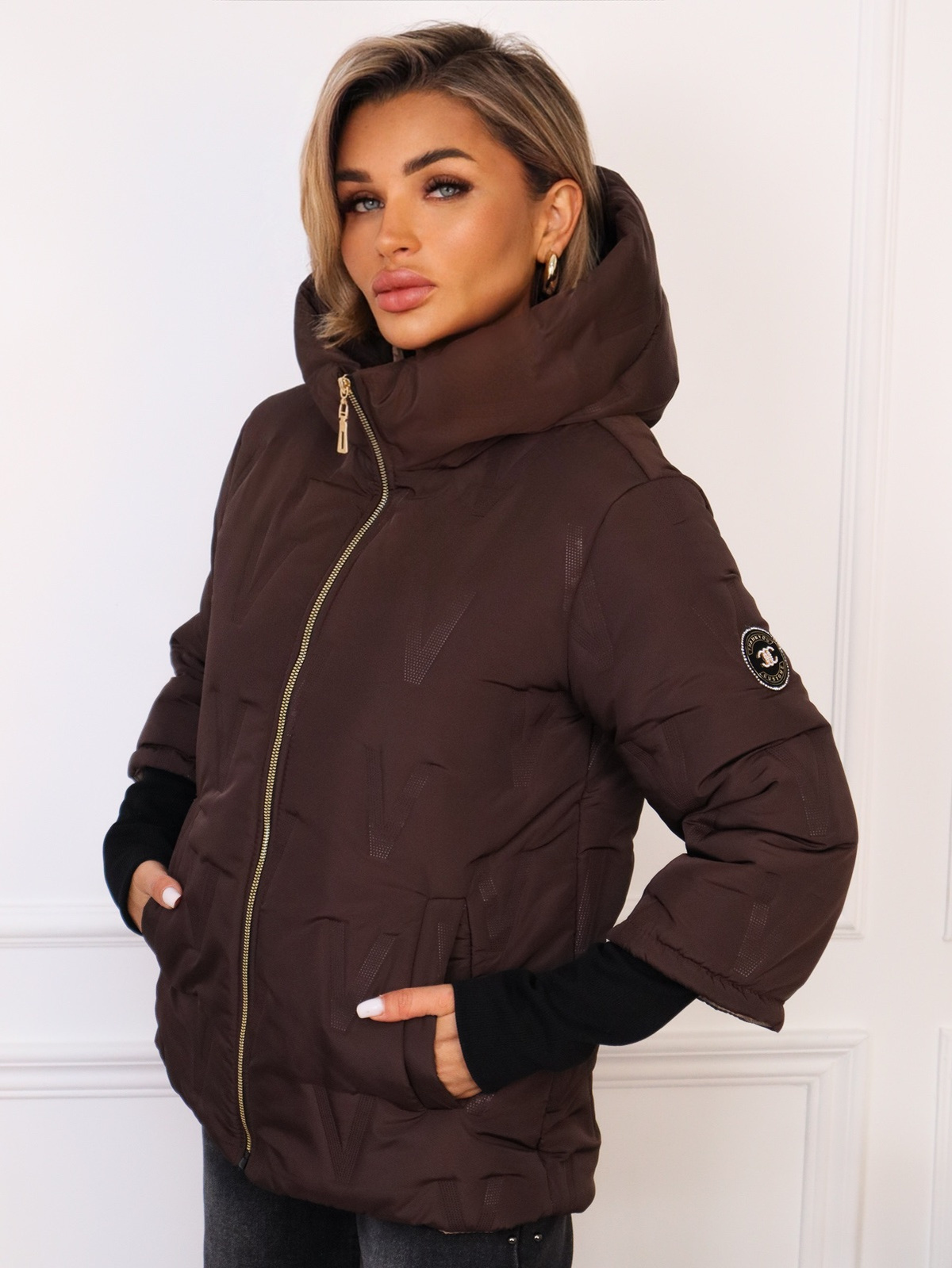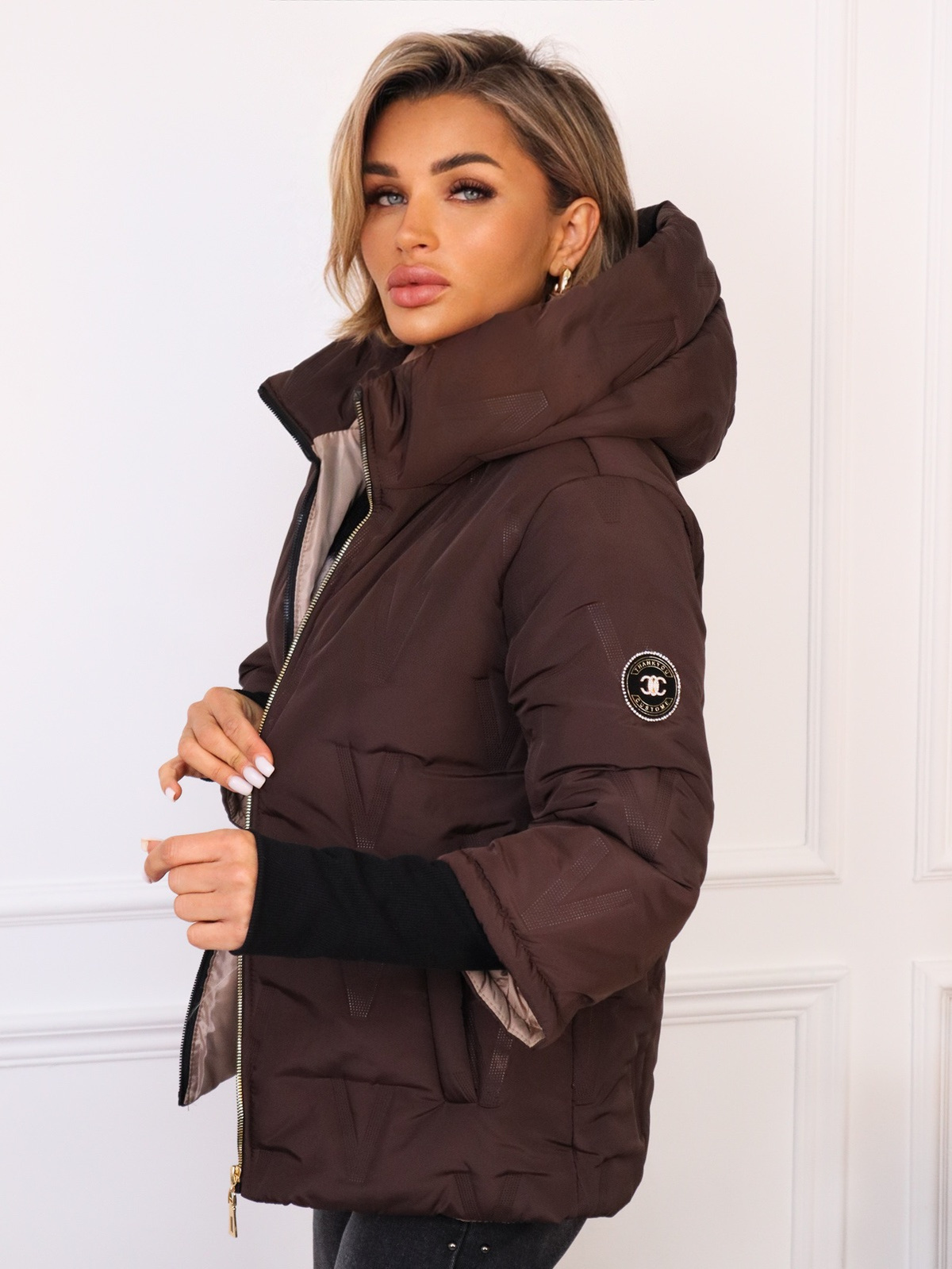 KURTKA ASYMETRYCZNA Z PRZEDŁUŻONYMI ŚCIĄGACZAMI PRZY RĘKAWACH- CZEKOLADOWA