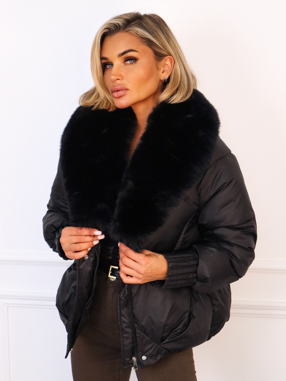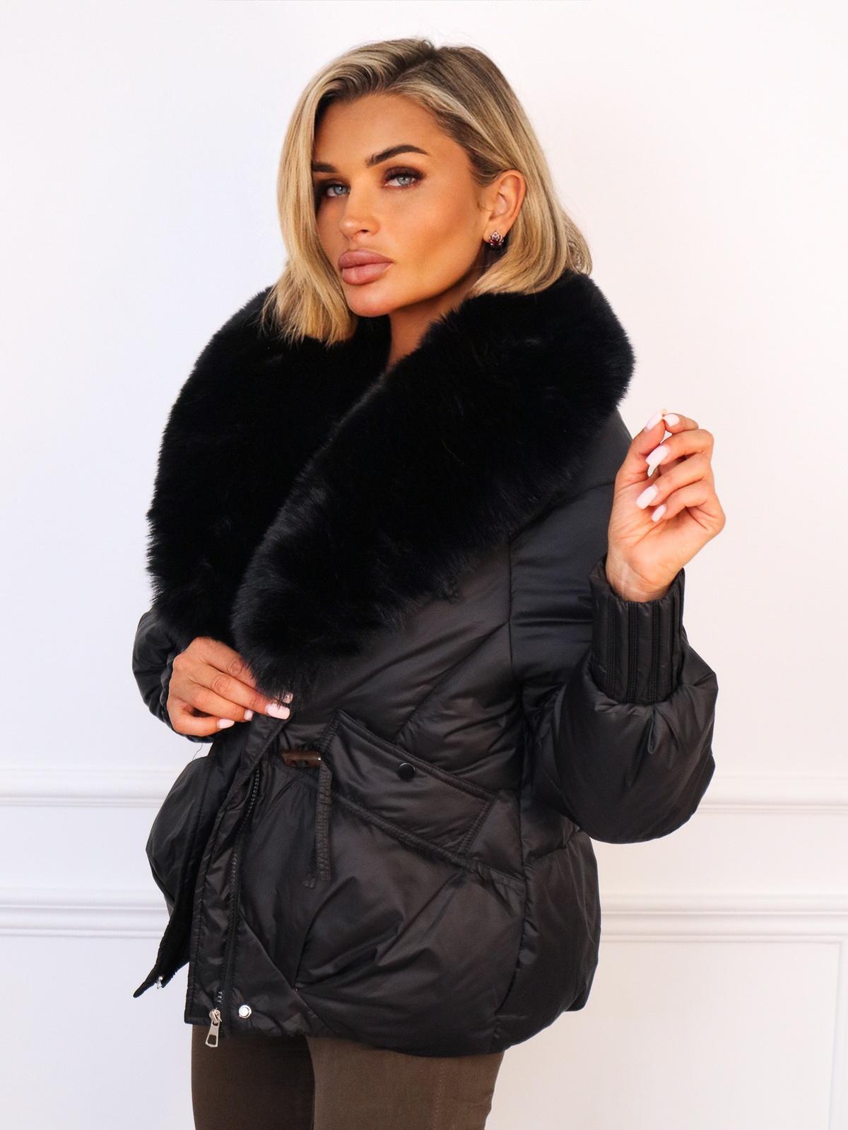 KURTKA ZIMOWA ZAPINANA NA ZAMEK I GUZIKI Z FUTERKIEM- CZARNA
