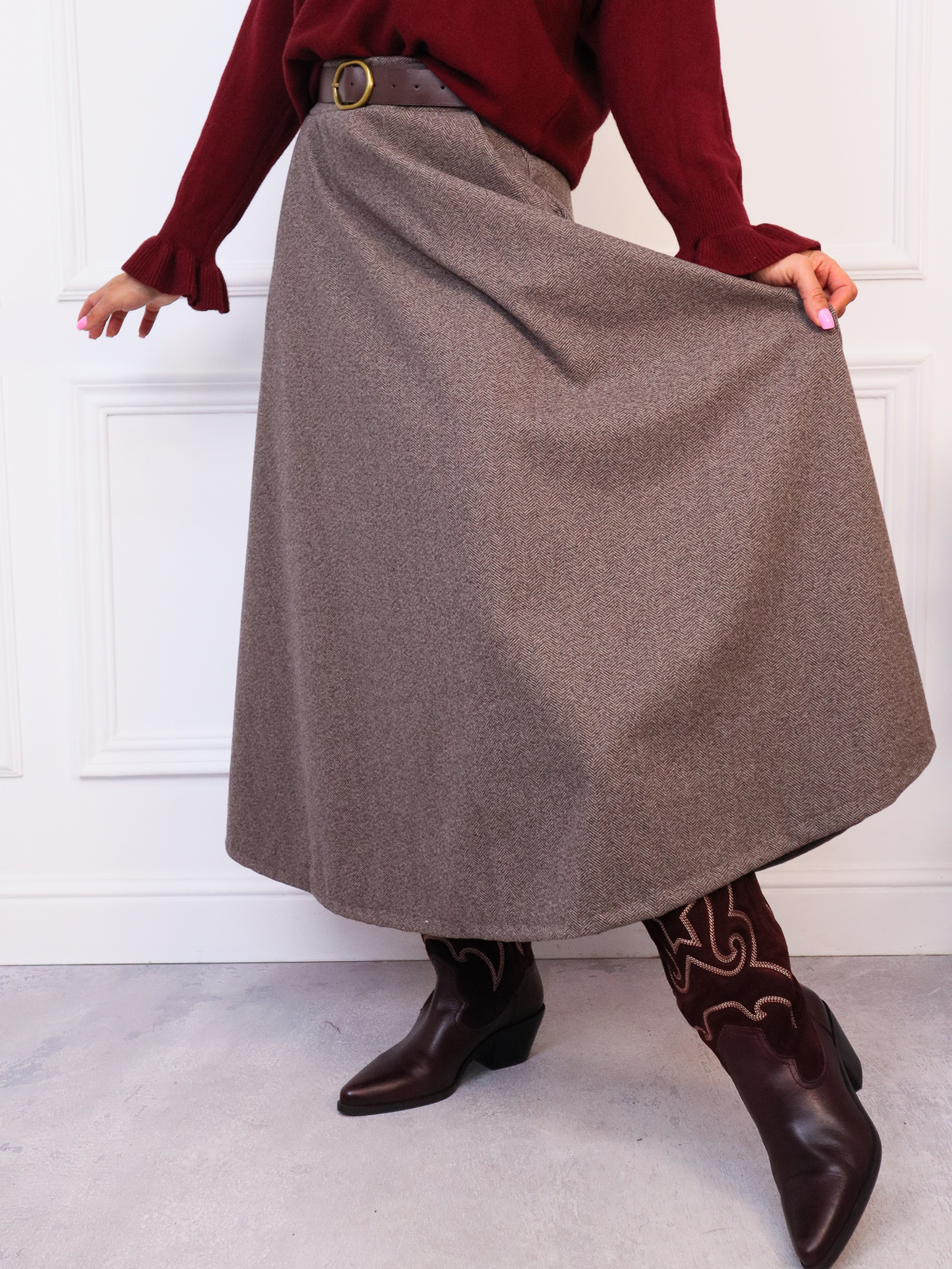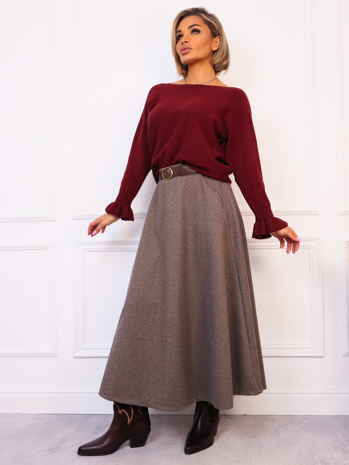 SPÓDNICA DZIANINOWA ROZKLOSZOWANA Z PASKIEM- FANGO