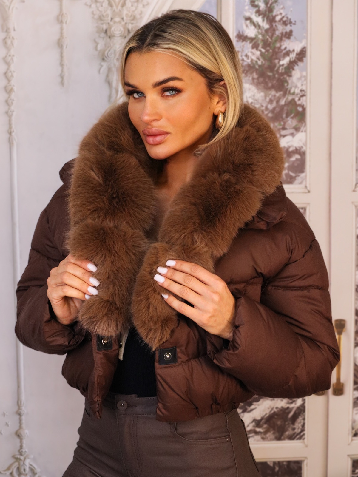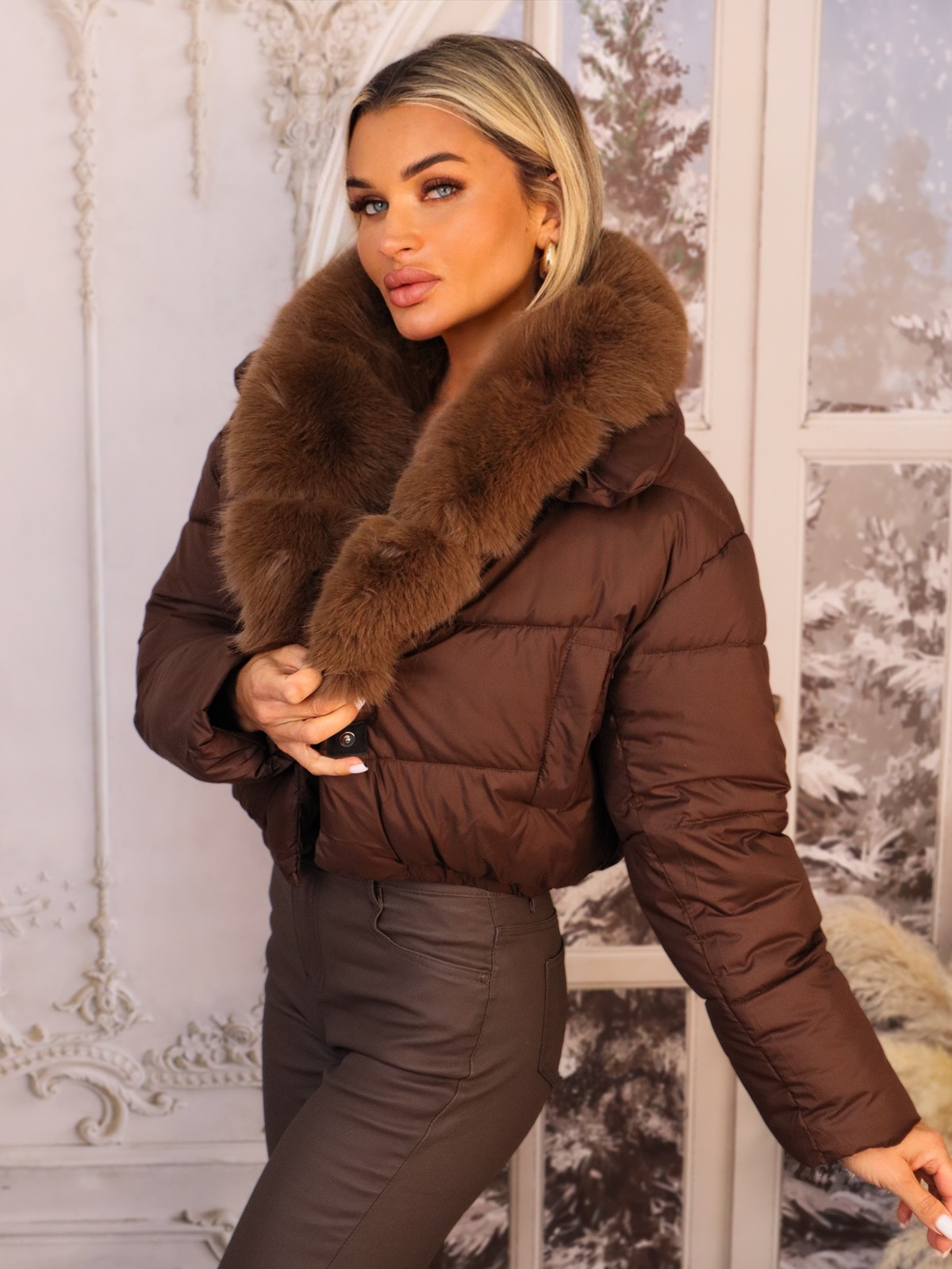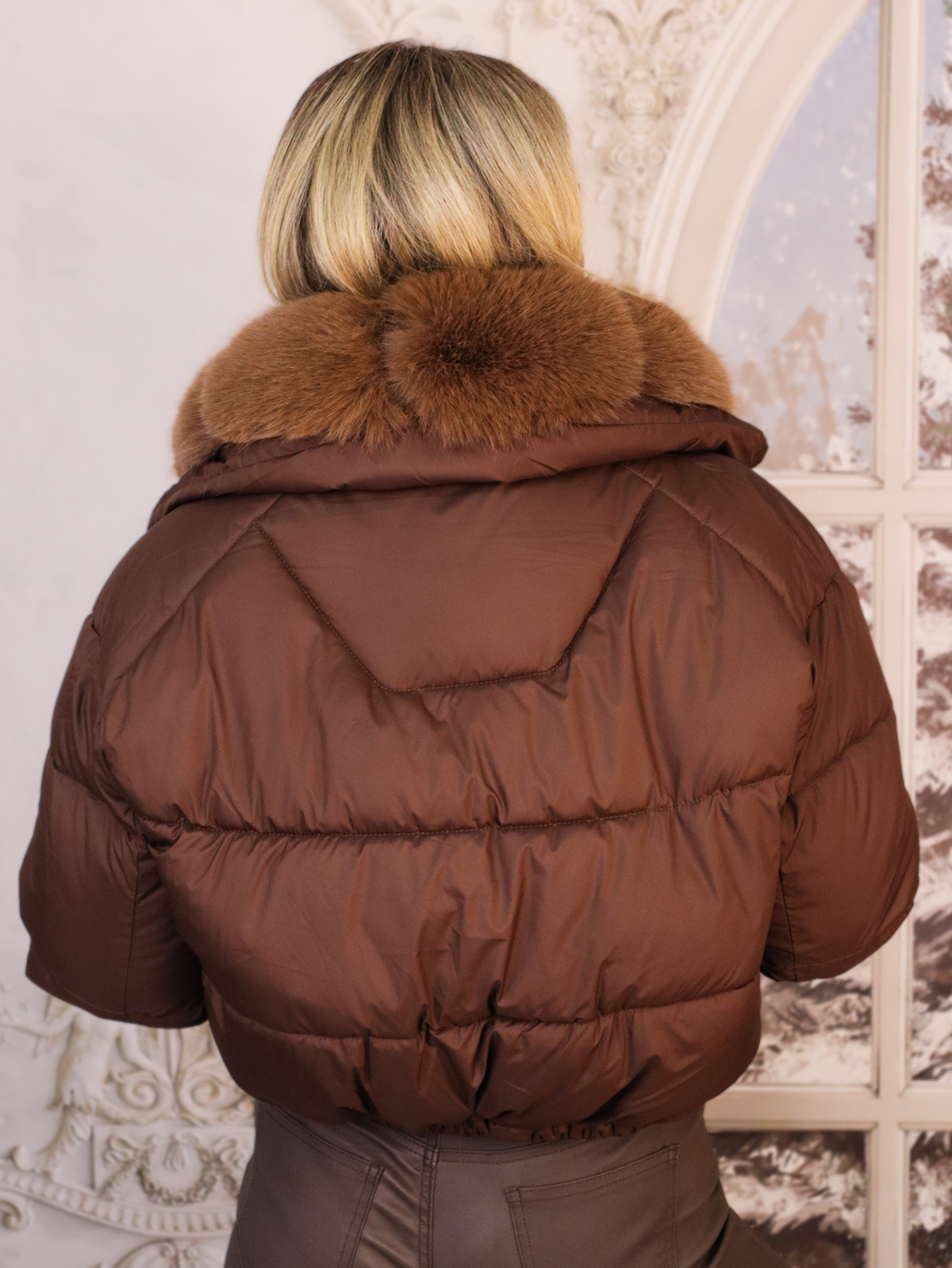 KURTKA Z FUTERKIEM ZAPINANA NA NAPY- CZEKOLADOWA