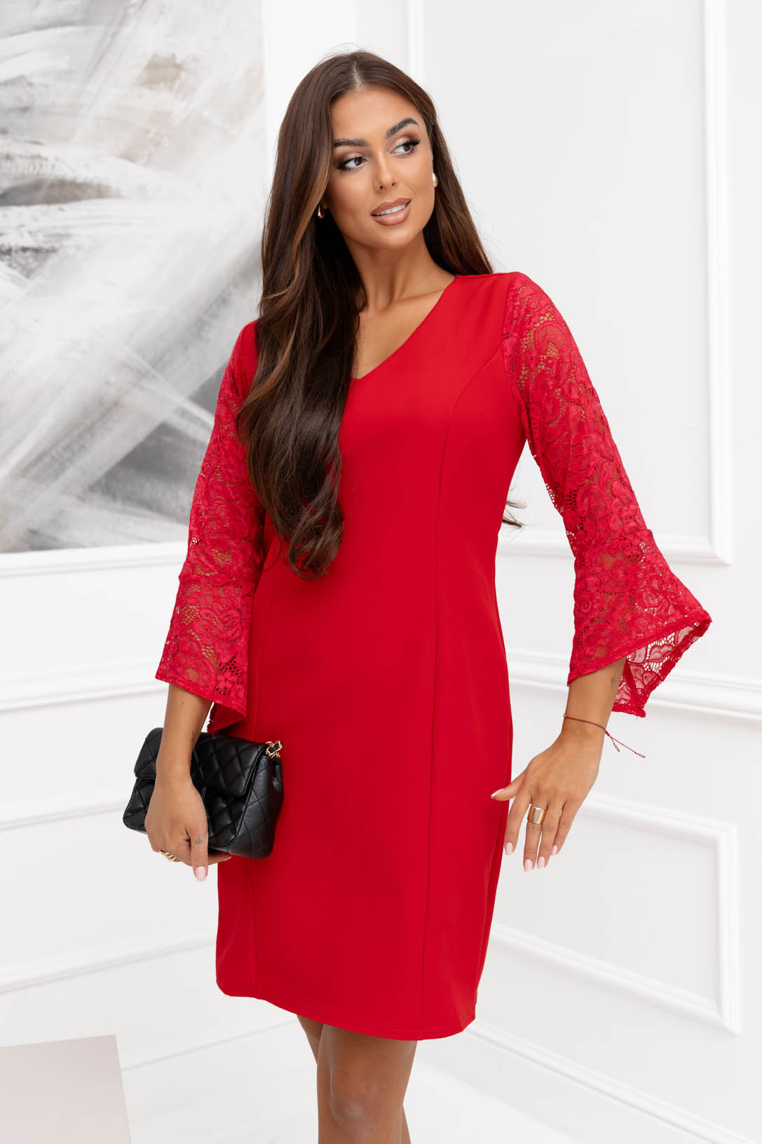 SUKIENKA MINI Z KORONKOWYMI RĘKAWAMI- CZERWONA