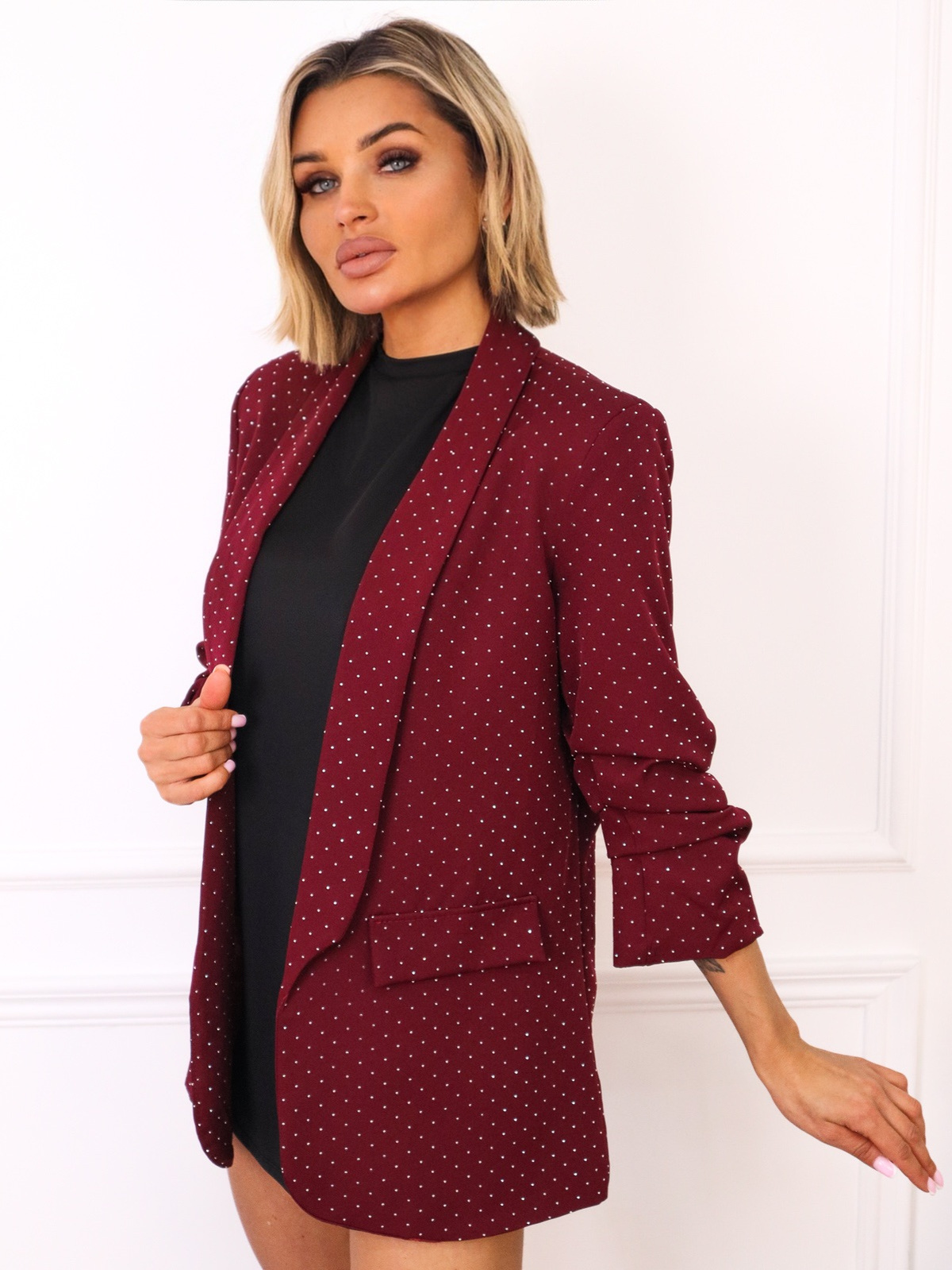 Marynarka onesize zdobiona cyrkoniami. Rękaw 3/4 z marszczeniem.