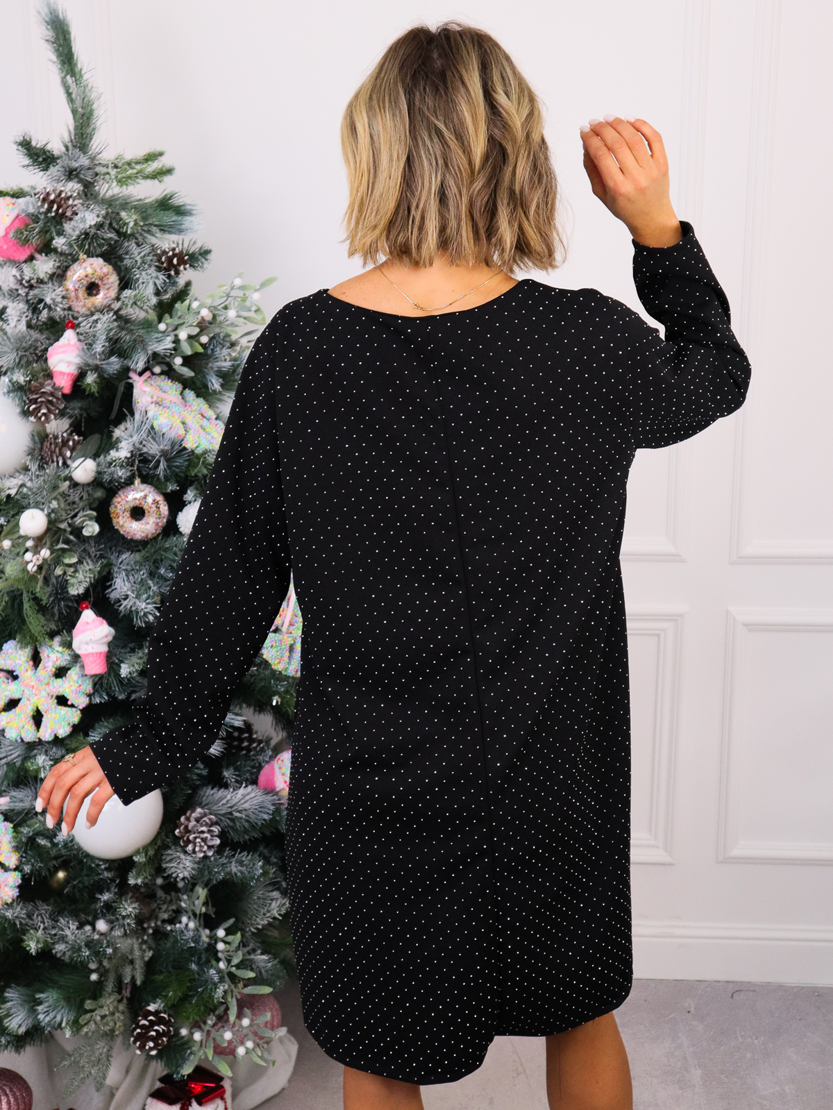 Sukienka zdobiona cyrkoniami.