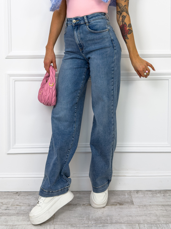 SPODNIE JEANSOWE STRAIGHT W PANTERKĘ