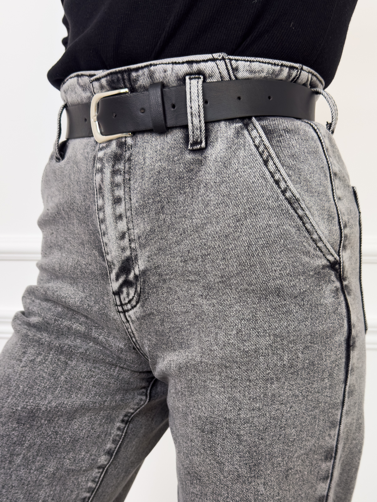 SPODNIE JEANSOWE Z WYSOKĄ TALIĄ I DŁUGIMI NOGAWKAMI + PASEK- NIEBIESKIE